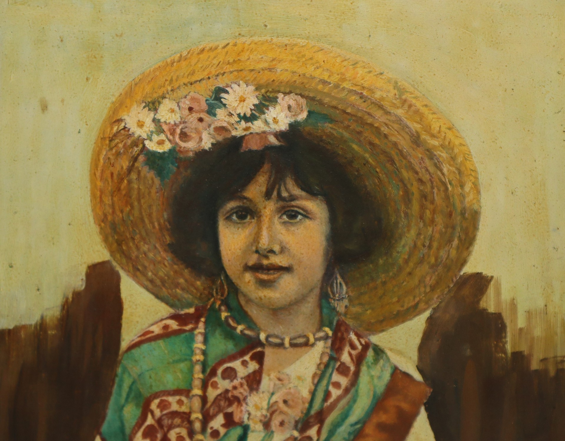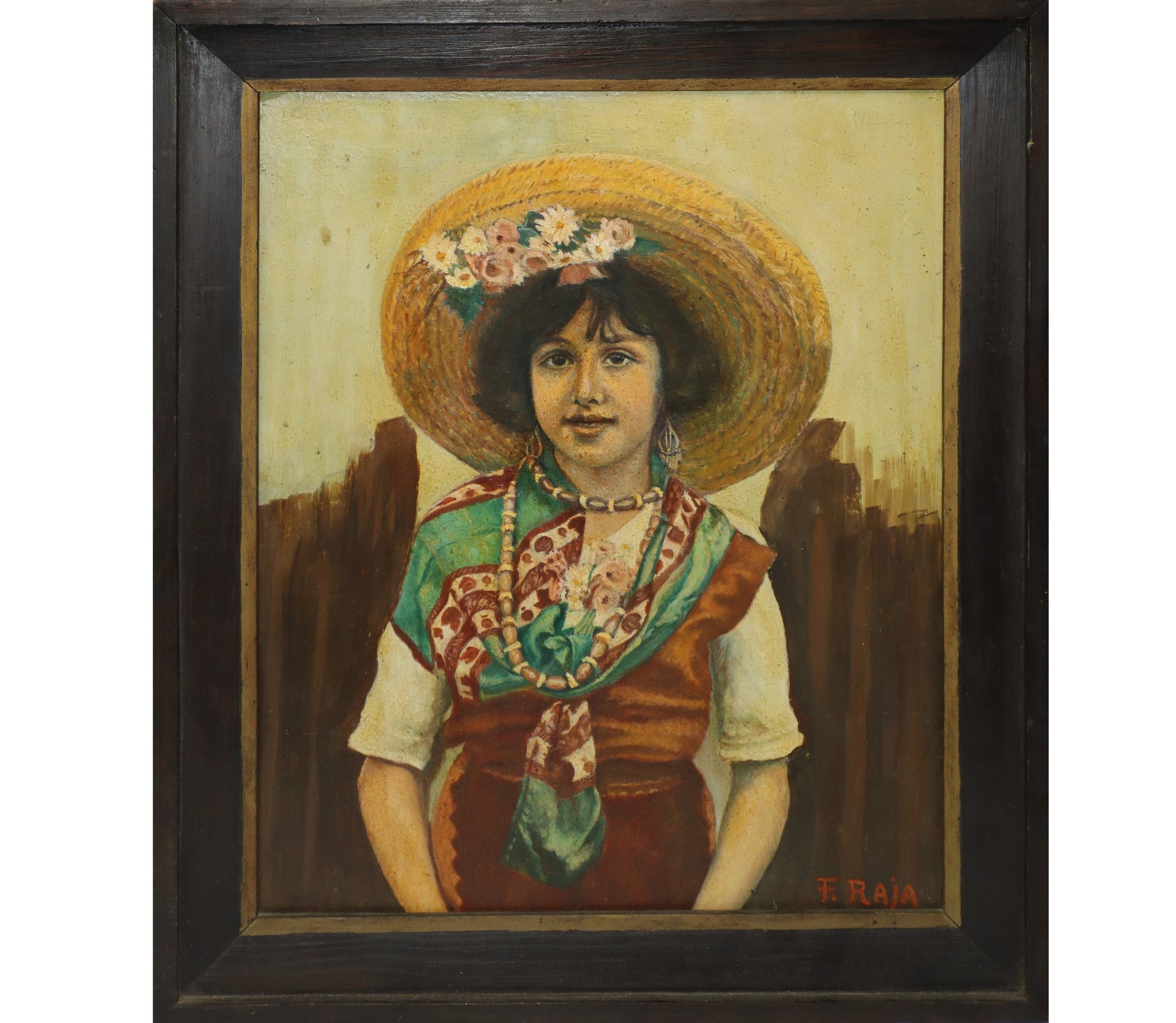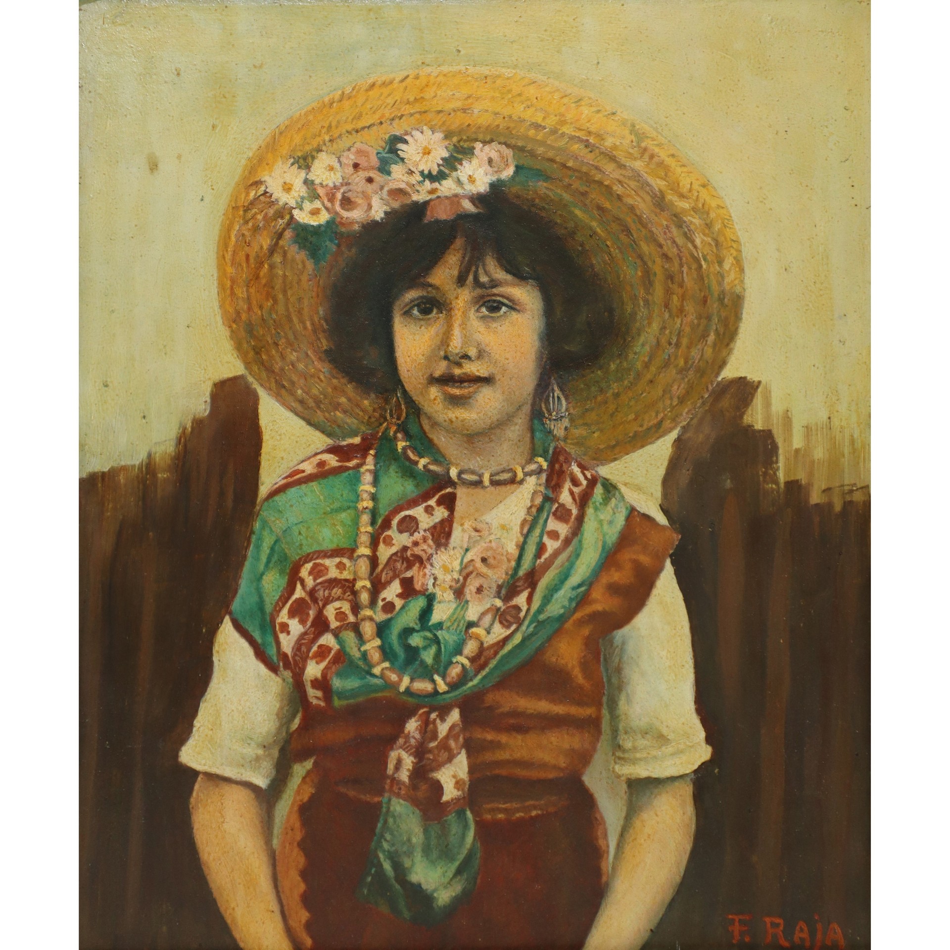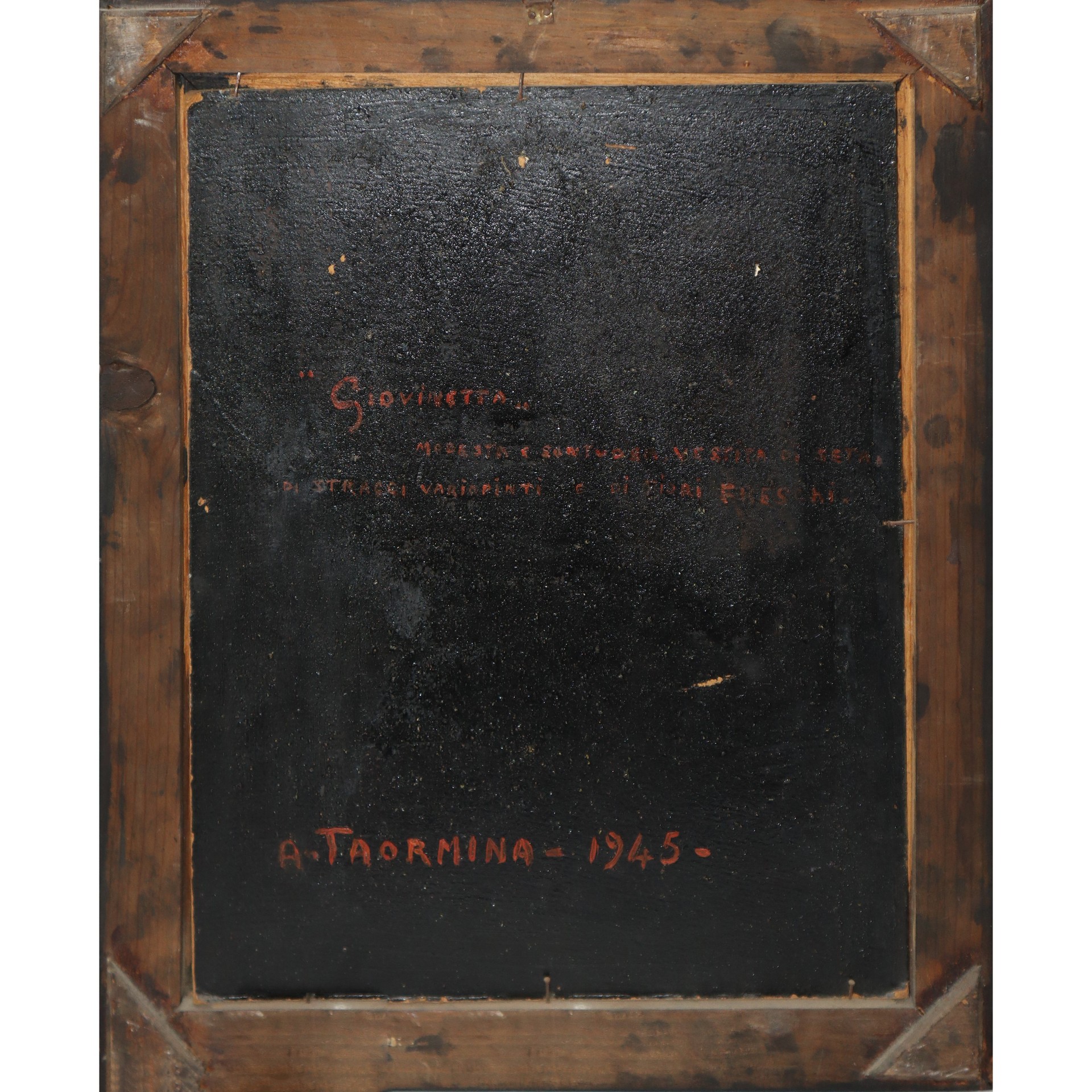 Giovinetta, Taormina, 1945 35x27,5, in cornice h cm 42x35 Olio su cartone Firmato in basso a destra F.Raja