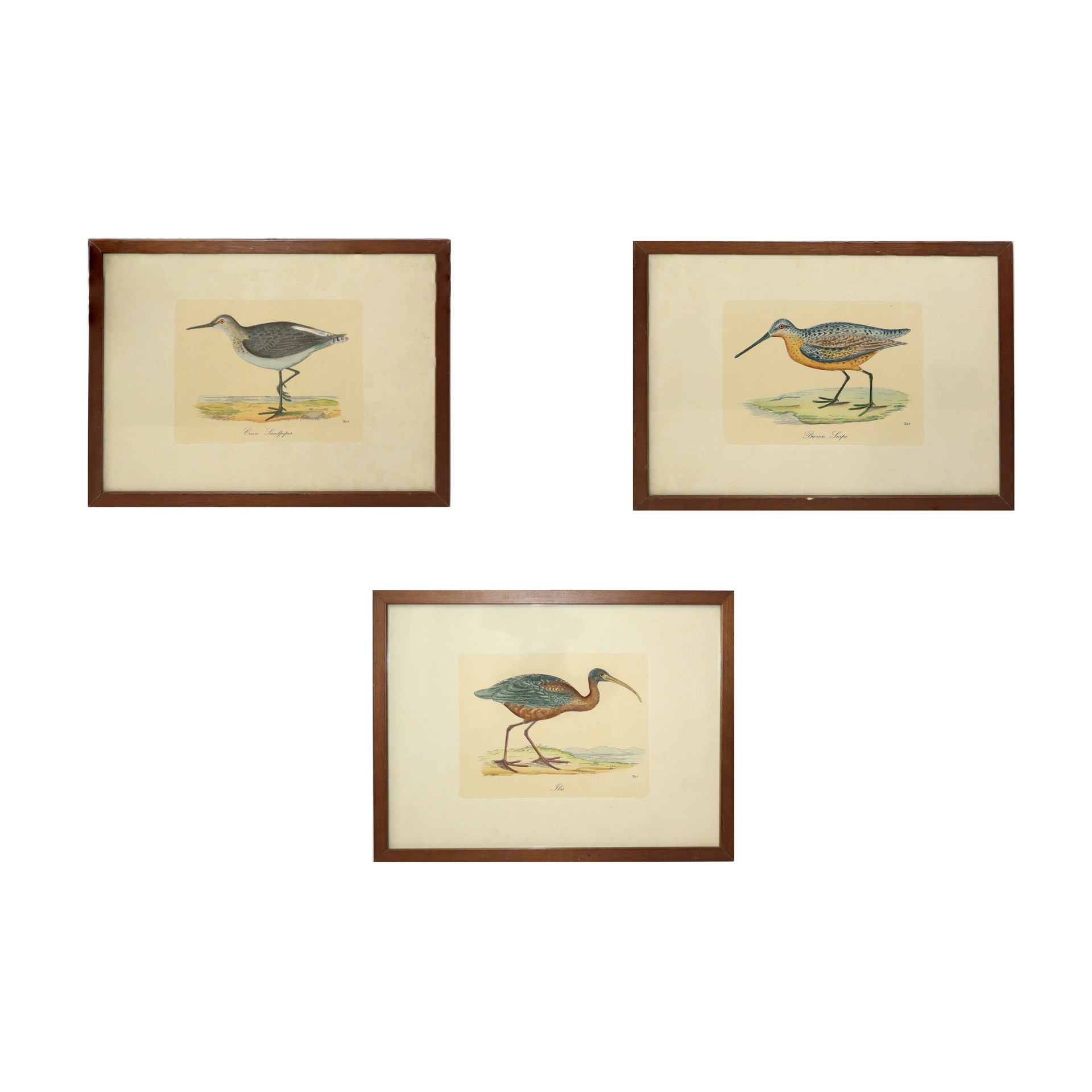 N°3 Incisioni raffiguranti: Brown snipe,Ibis, Creen Sandpiper, fine 19° secolo