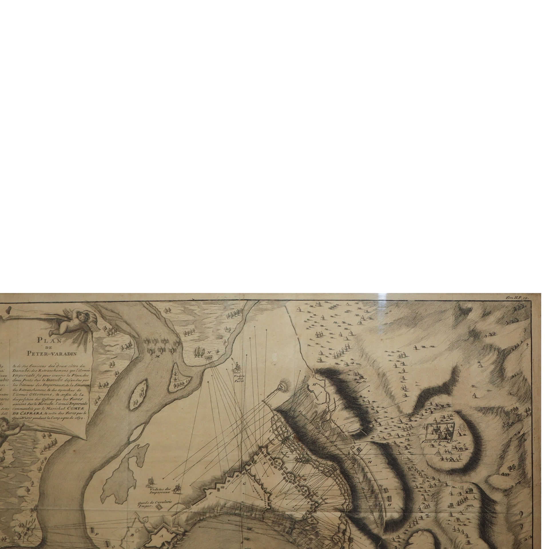 Pianta di Petervaradino: battaglia tenutasi tra le truppe imperiali e le truppe ottomane al comando del Gran visir nel 1716, 1732 h mm 445X635 in cornce h cm 52X72