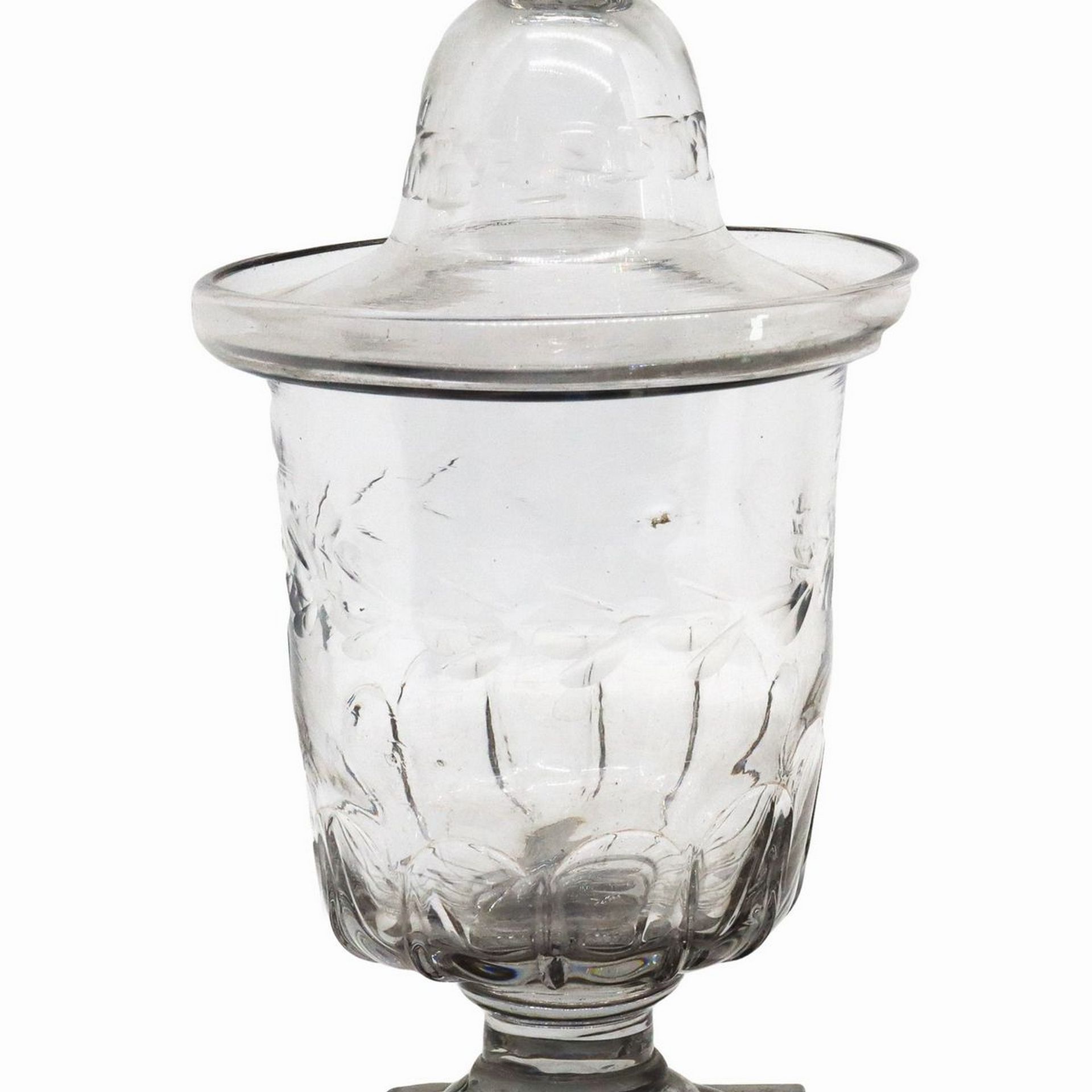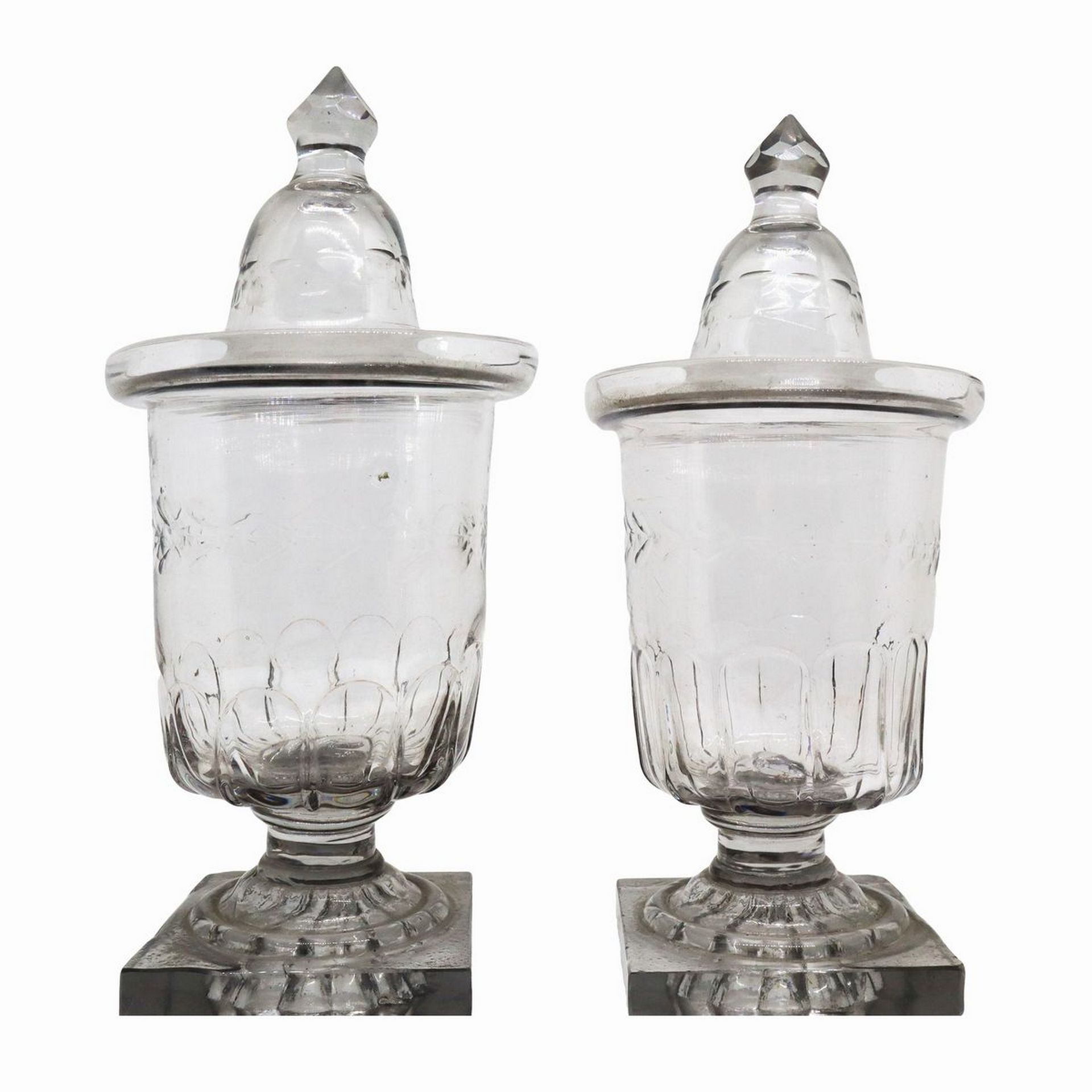 Coppia di vasi in vetro con coperchio h cm 18, base cm 6 x cm 6 In vetro decoratoIn vetro decorato