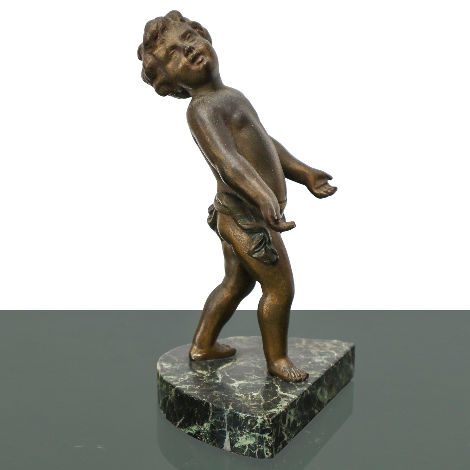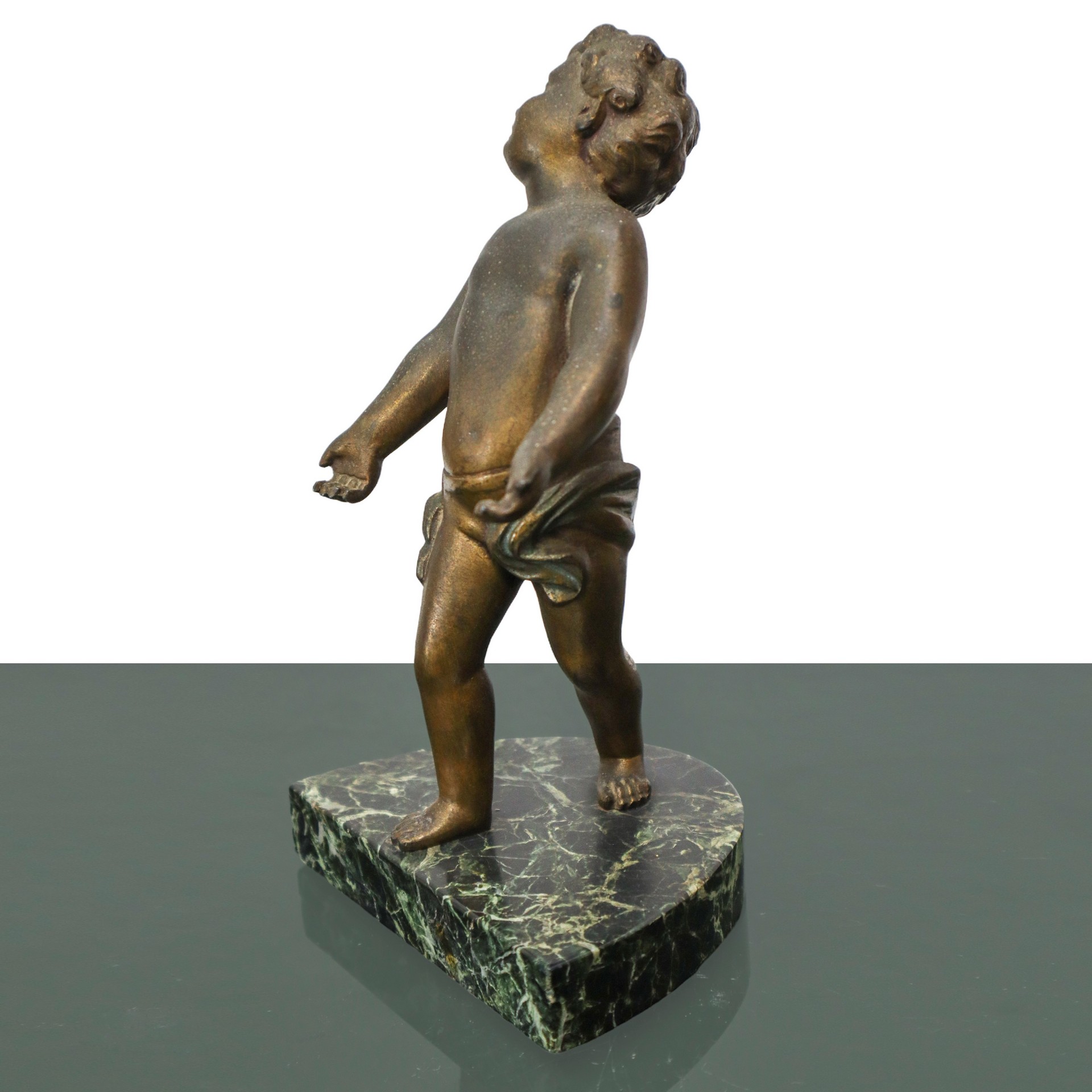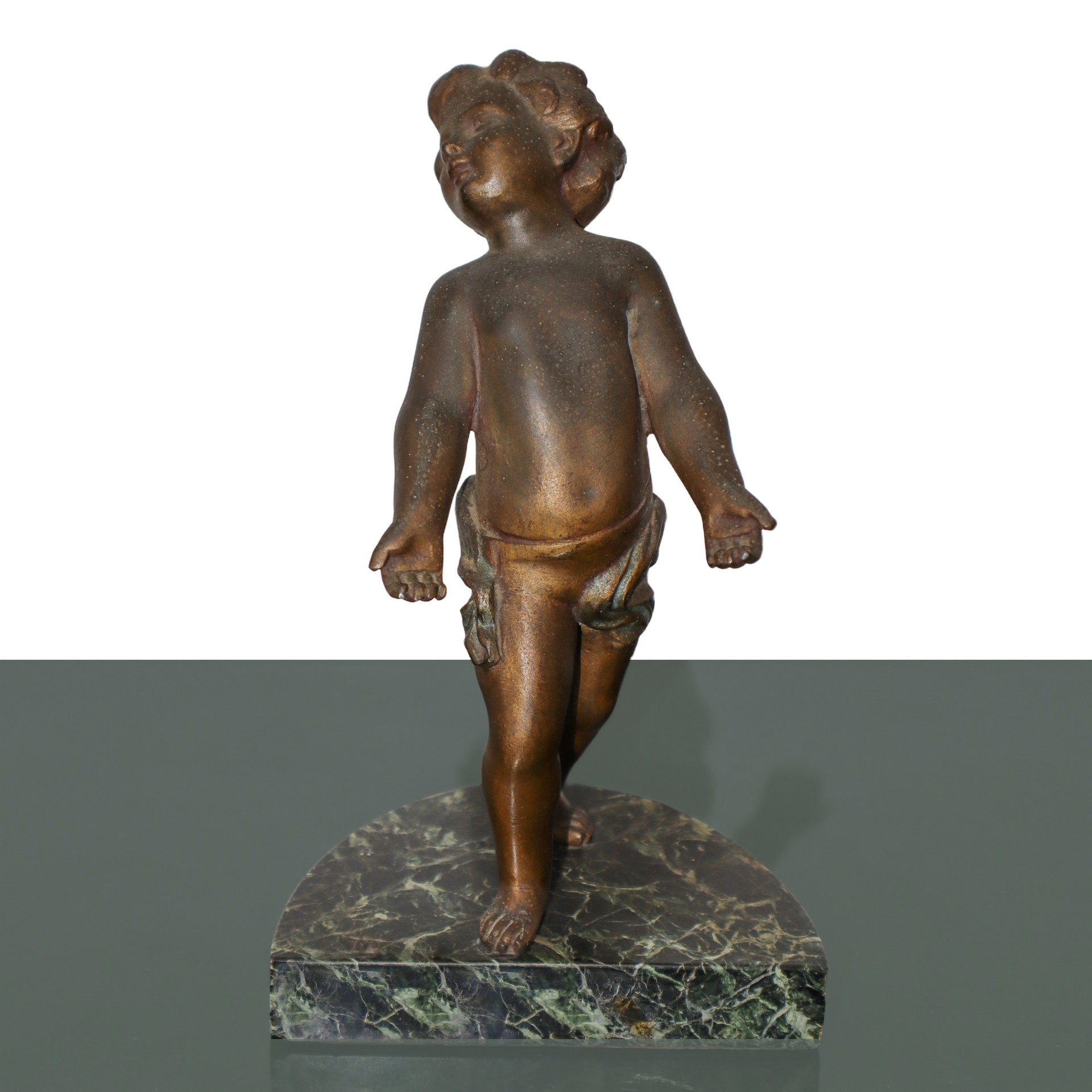 Fermalibro con puttino in antimonio, primi 20° secolo H cm 22x10 Base in marmoBase in marmo