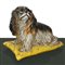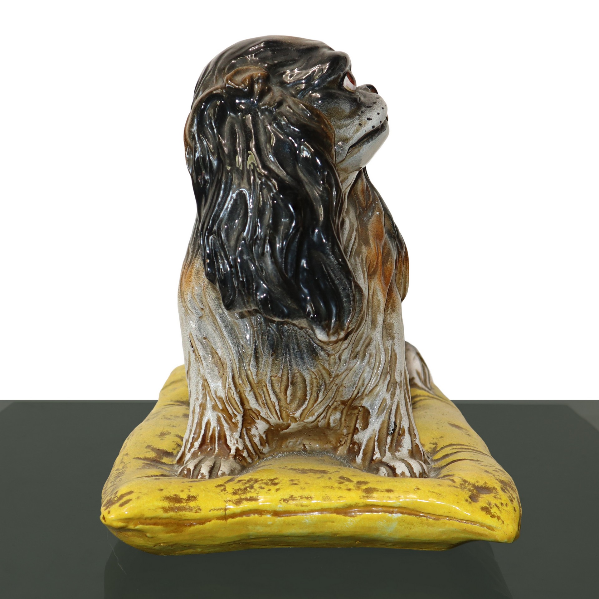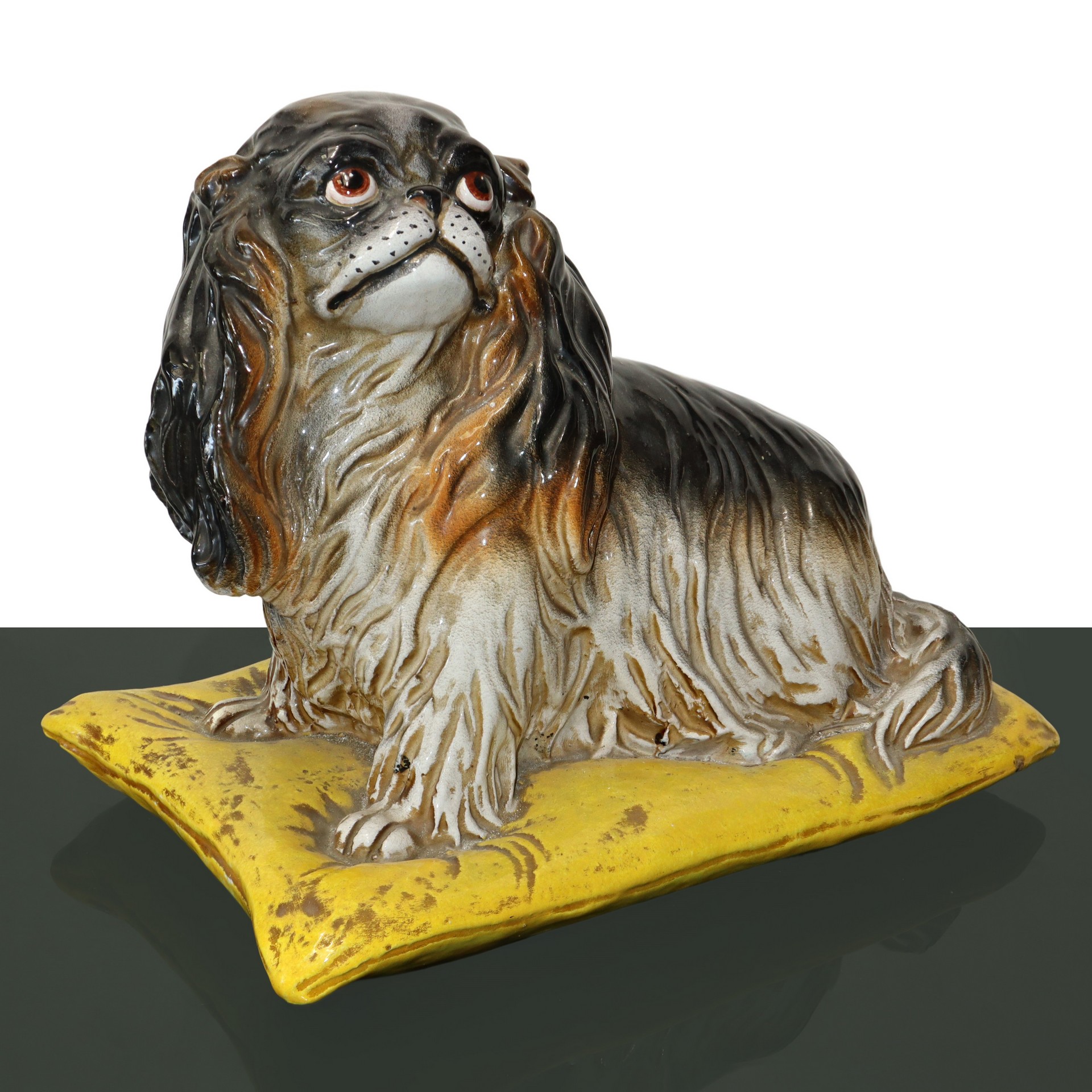 Pechinese in maiolica smaltata e dipinta policroma, 20° secolo h cm 33X44X26 Presenti incollature nella parte inferiore.Presenti incollature nella parte inferiore.