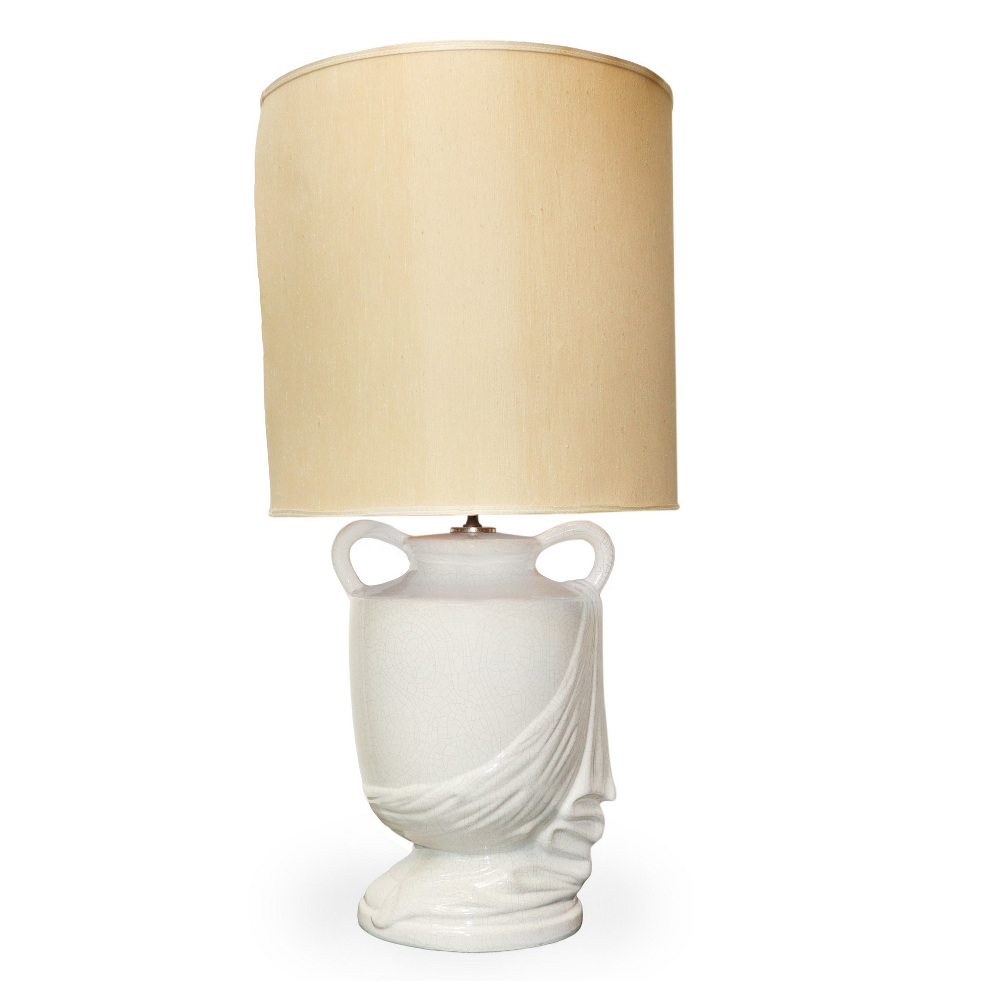 Lampada da tavolo con base in ceramica bianca biansata h cm 66