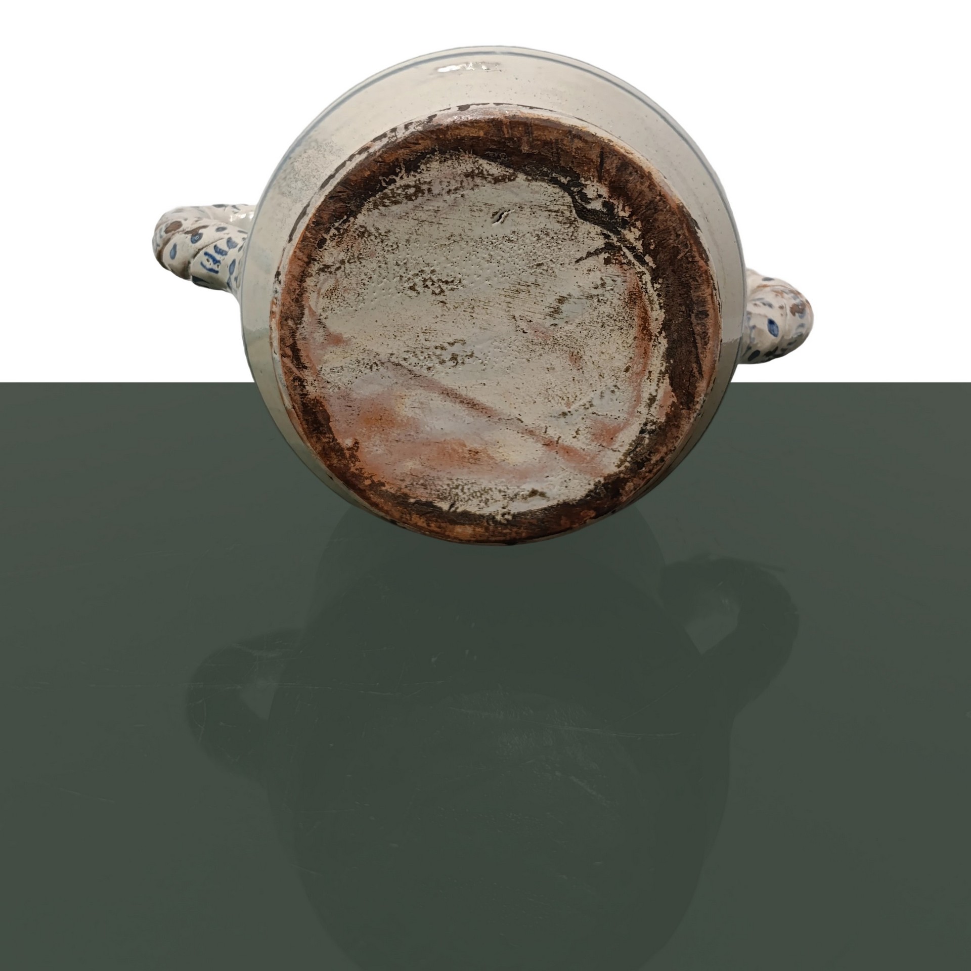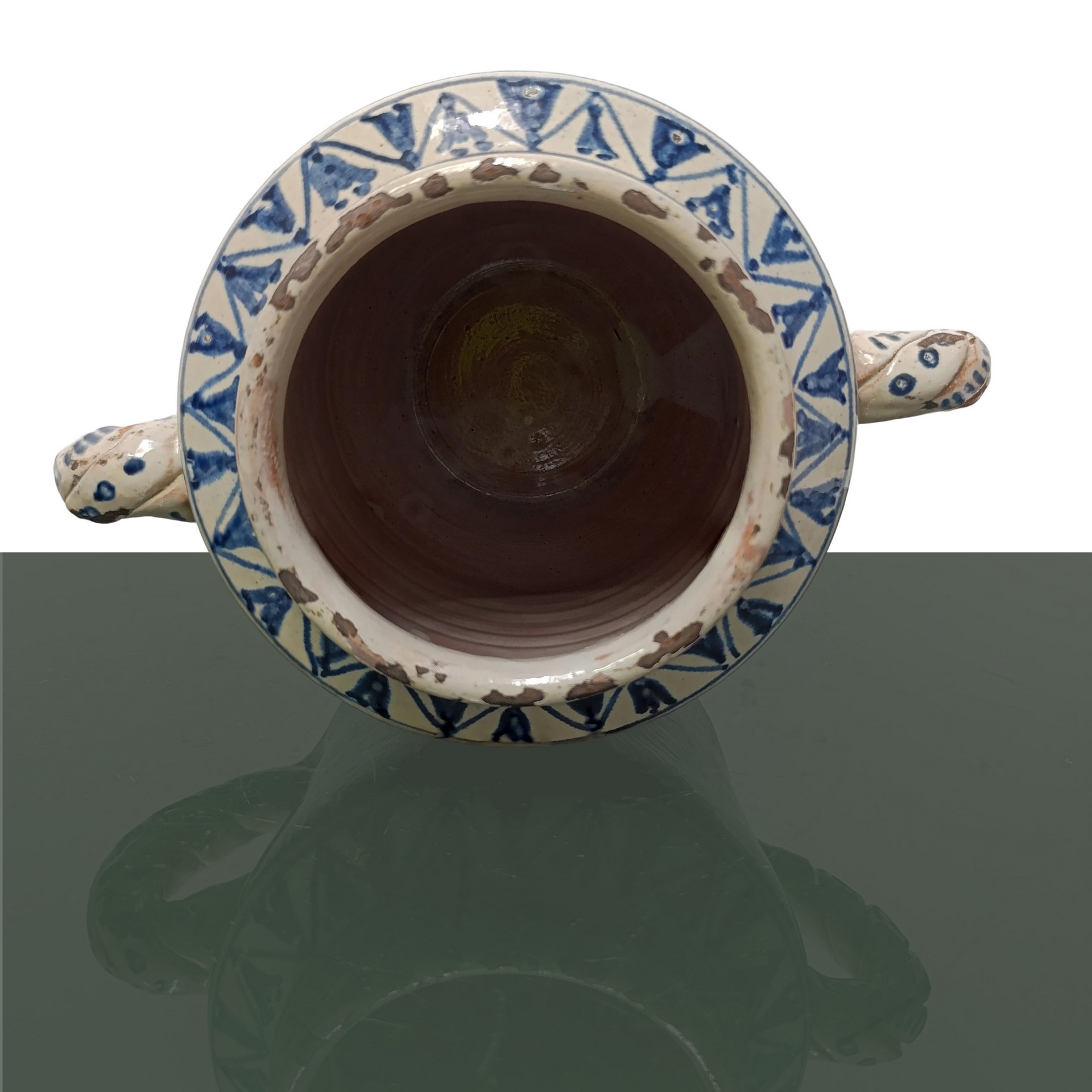 Vaso da farmacia in ceramica con decori blu su fondo bianco e volto di profilo, biansata H cm 19 x23