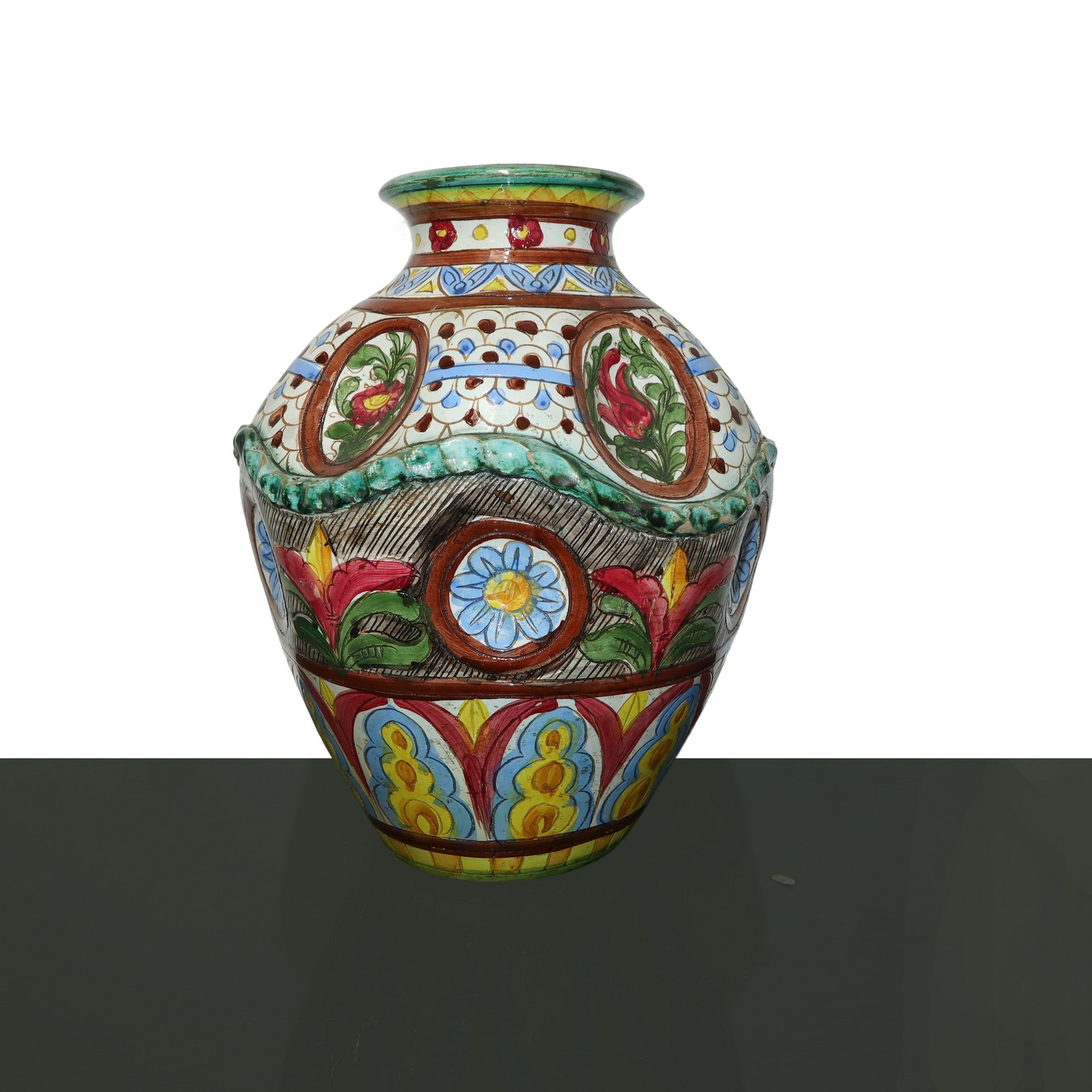 Maioliche Aretini (1918) - Vaso policromo h cm 30 Firmato sulla base Firmato sulla base