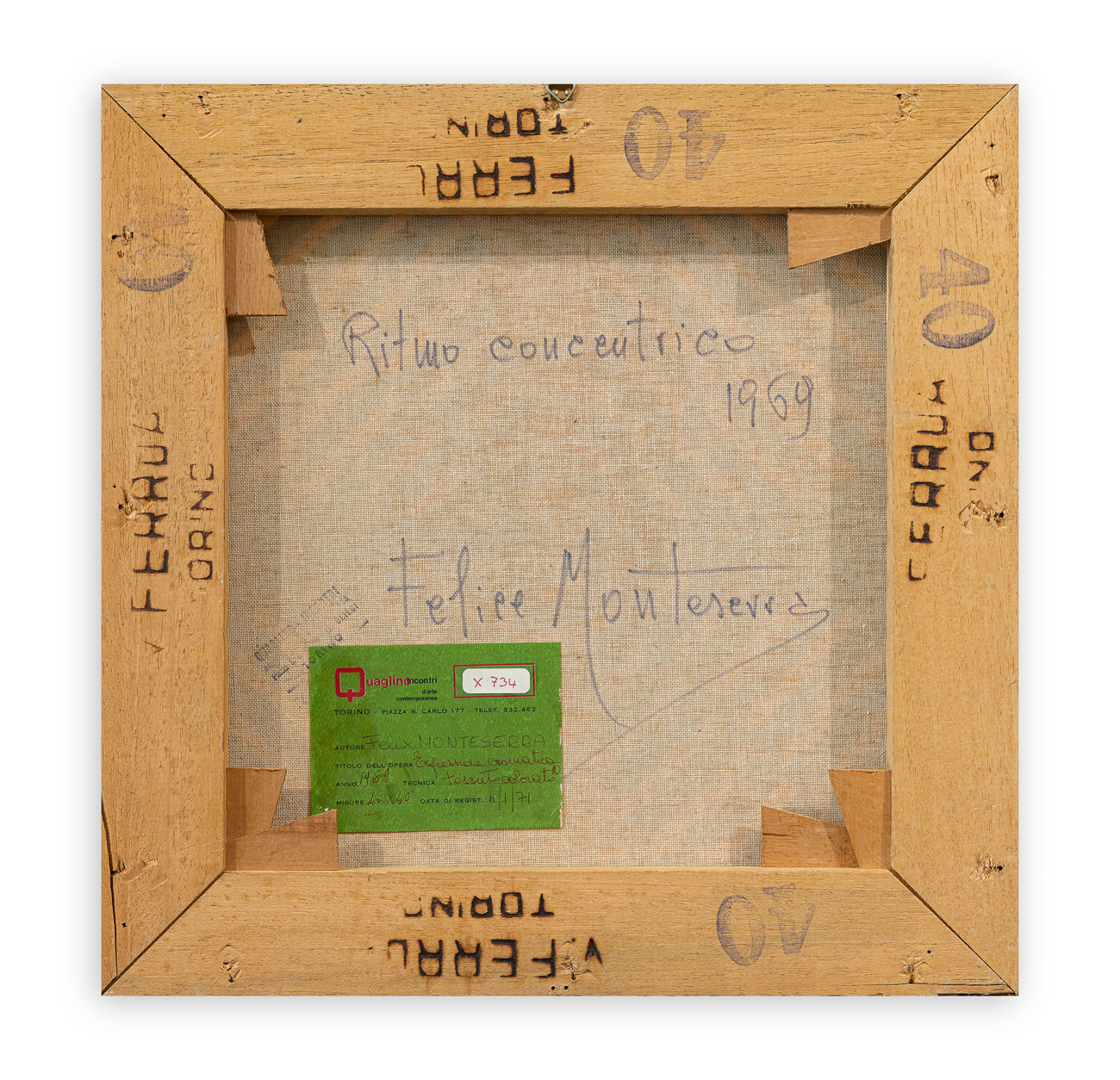 Etichetta e timbro della Galleria Quaglino Incontri - Sala d'Arte Contemporanea (TO) al retro