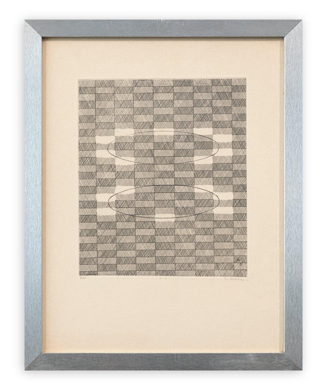 Firma indecifrata e numerazione (Esemplare 9/35) a matita al fronte