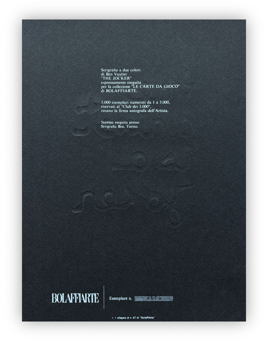 Serigrafia a 2 colori espressamente eseguita per la collezione 'Le carte da gioco' di Bolaffiarte