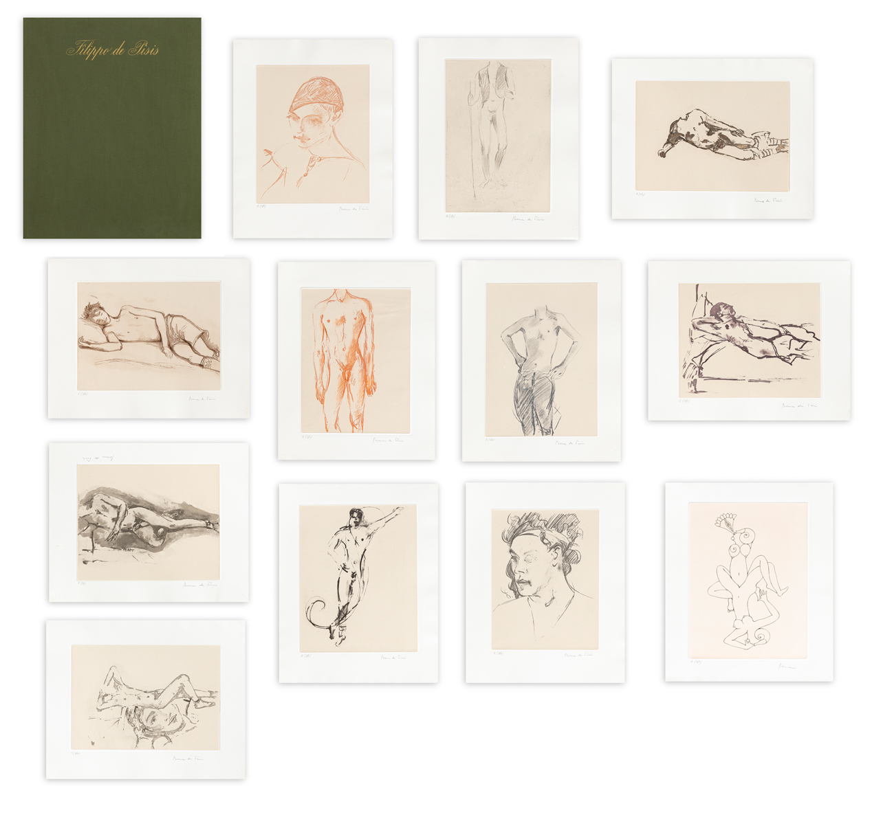 Cartella contenente testi di André Pieyre de Mandiargues e Sandro Zanotto, undici poesie inedite di Filippo de Pisis tradotte in francese da André Pieyre de Mandiargues, una poesia di Filippo de Pisis dedicata a Bona, undici incisioni di Bona de Pisis da disegni di Filippo de Pisis e una incisione di Bona dedicata a Filippo de Pisis