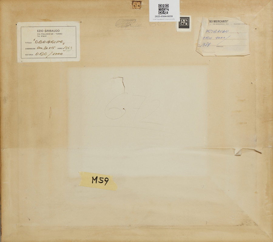 sul retro: etichetta dell'artista ed etichetta Galleria dei mercanti, Torino
