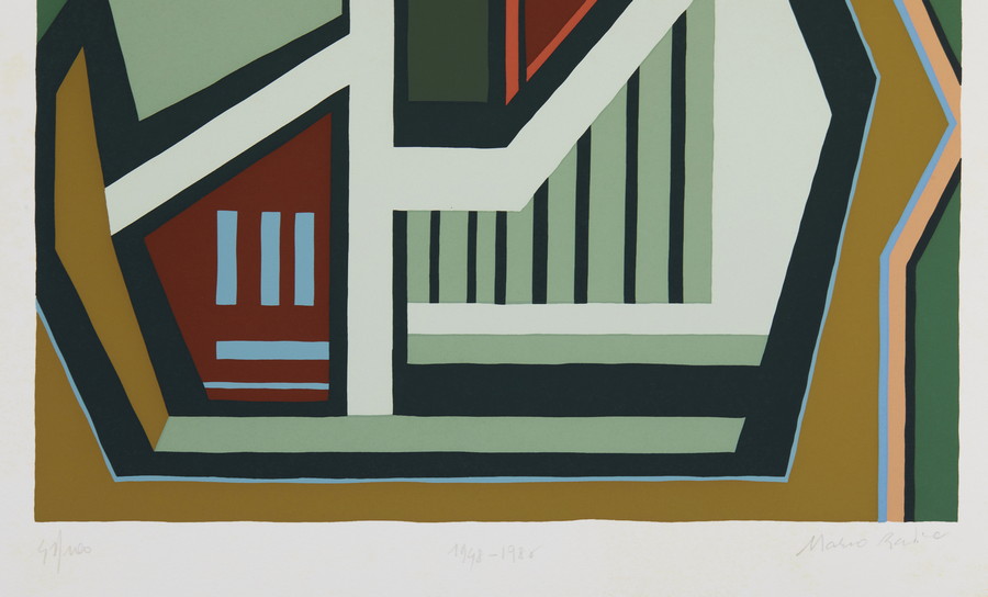 RADICE MARIO (1898 - 1987) COMPOSIZIONE A.N.F. E COMPOSIZIONE R.S.Z.2. 1986. Serigrafia. Cm 49,50 x 69,50. Cartella composta da due opere grafiche di Mario Radice, testo di Flaminio Gualdoni, edizioni Valente Arte Contemporanea