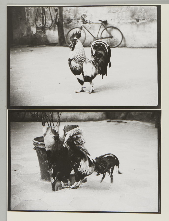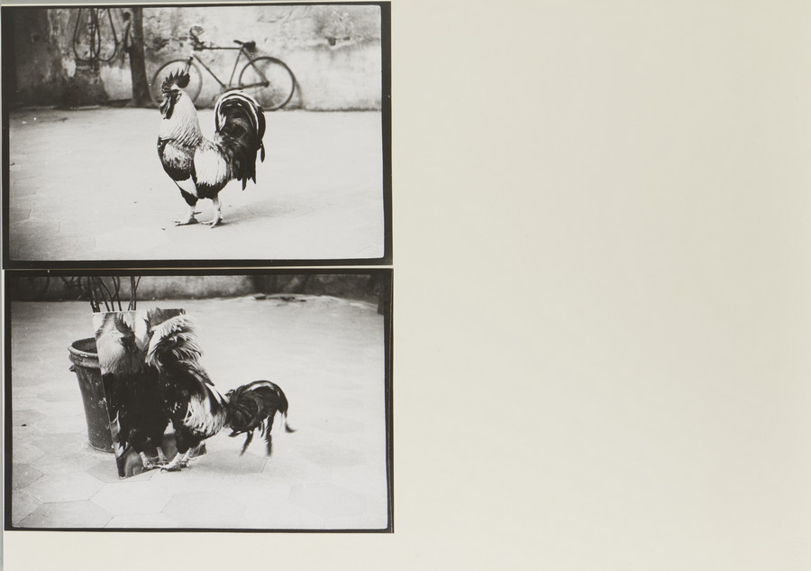 LOCCI BRUNO (1937 - 2010) IL GALLO DI GALLURA. tecnica mista e collage di fotografie su carta. Cm 73,00 x 51,00. dittico composto da due fotografie.