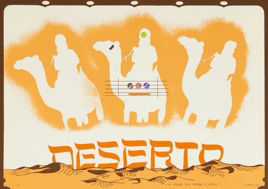 GAMBINO DUILIO (1937 - 2013) DESERTO. 1976. litografia. Cm 69,00 x 49,00. firma, data, dedica ad personam e tiratura a matita, es. LI/C, titolo in lastra.