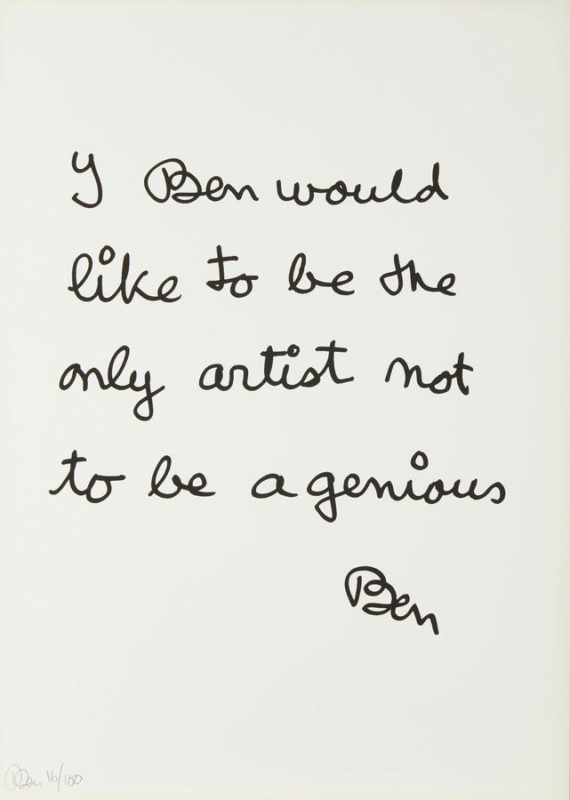 VAUTIER BEN (1935 - 2024) I BEN WOULD LIKE TO BE THE ONLY ARTIST NOT TO BE A GENIOUS. Serigrafia. Cm 50,00 x 70,00. firma e tiratura a matita, es. 16/100
