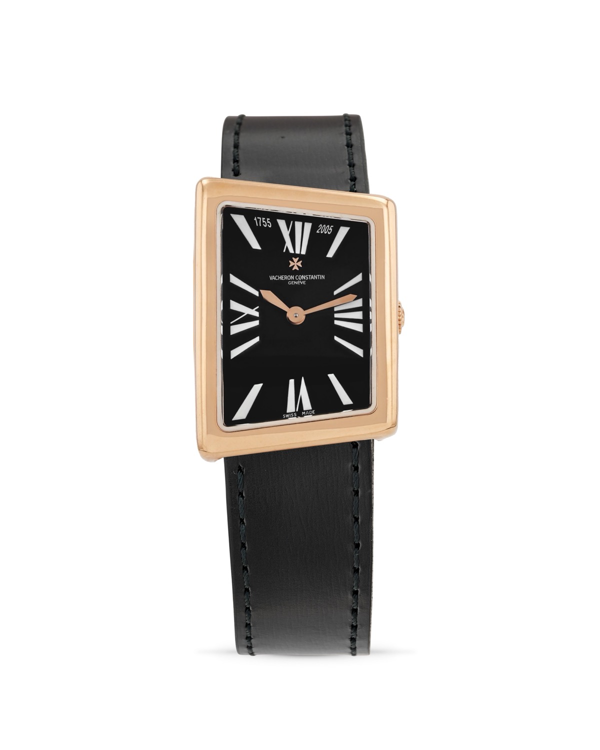 Cinturino in pelle e fibbia Vacheron Constantin in oro rosa.