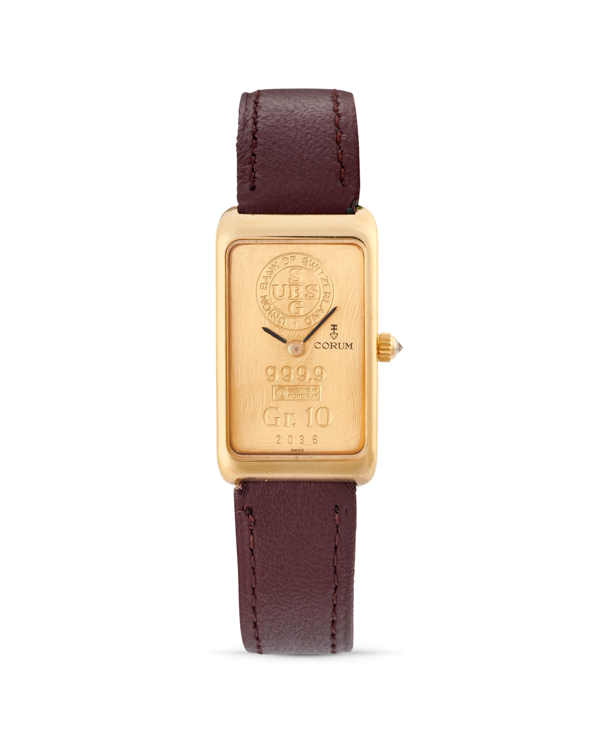 Quadrante in oro realizzato con un lingotto da 10 grammi, timbrato Union Bank of Switzerland.