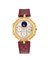 Quadrante bianco con disco in lapislazzuli attorno alle fasi lunari, indicazione della data, giorno della settimana e mese.