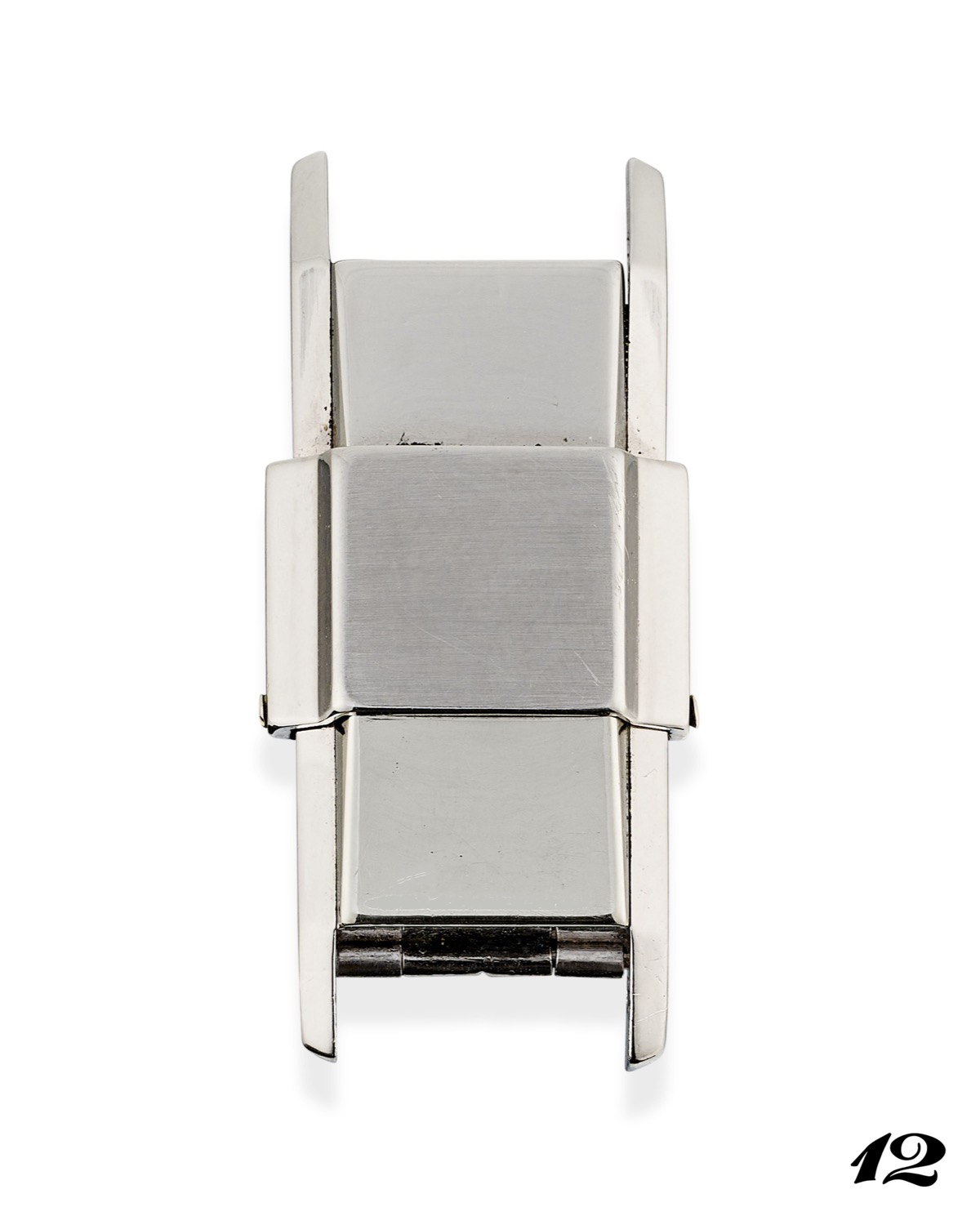 Cassa rettangolare sfaccettata e sportelletto scorrevole in acciaio, n.62590.