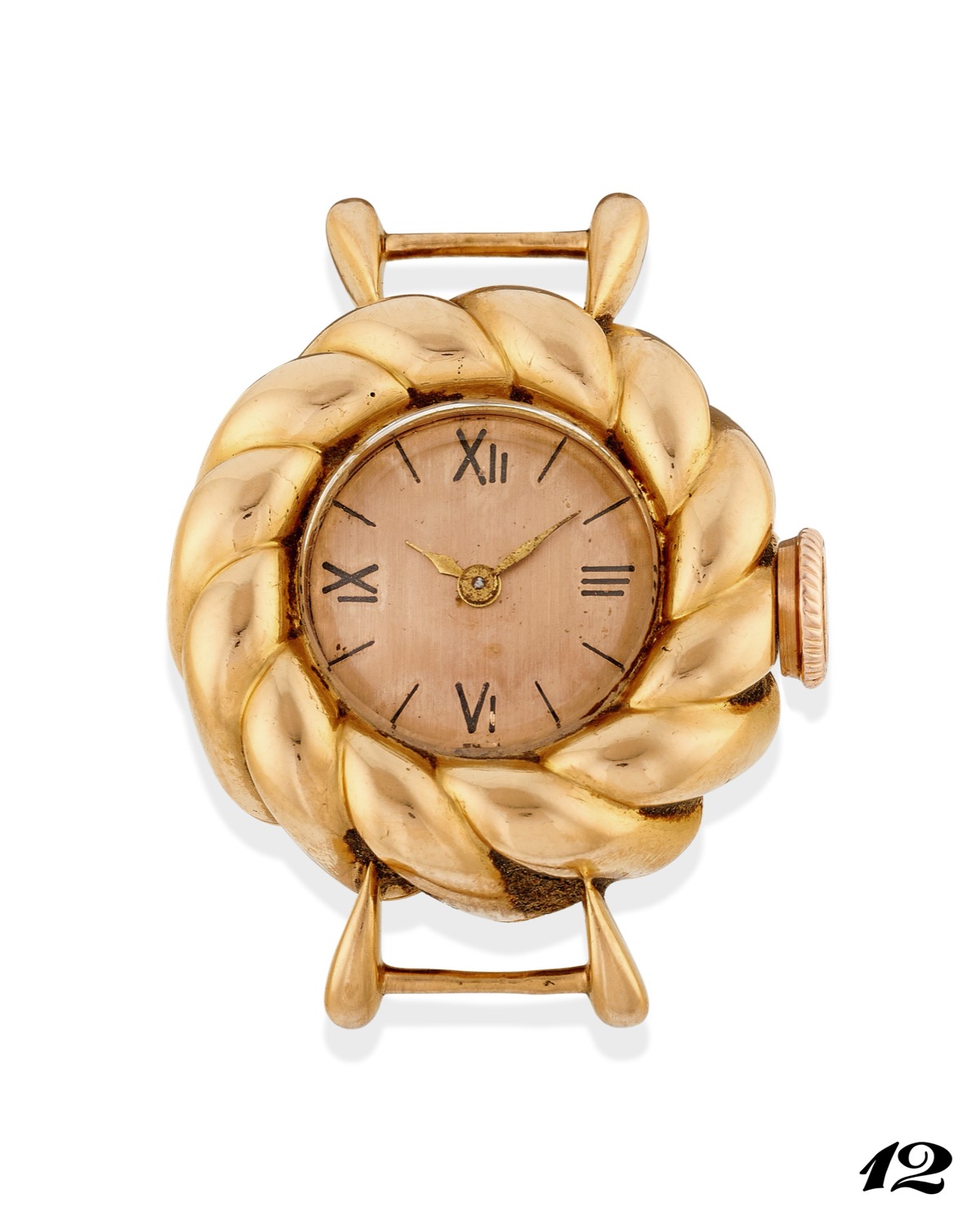Cassa di forma in oro rosa 18k, n.195, anse a goccia.