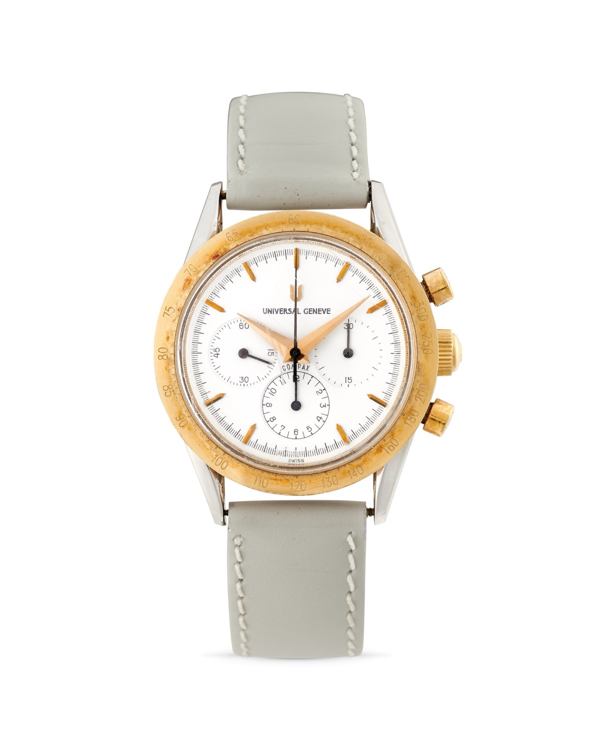 Cinturino in pelle e fibbia Universal Genève dorata.