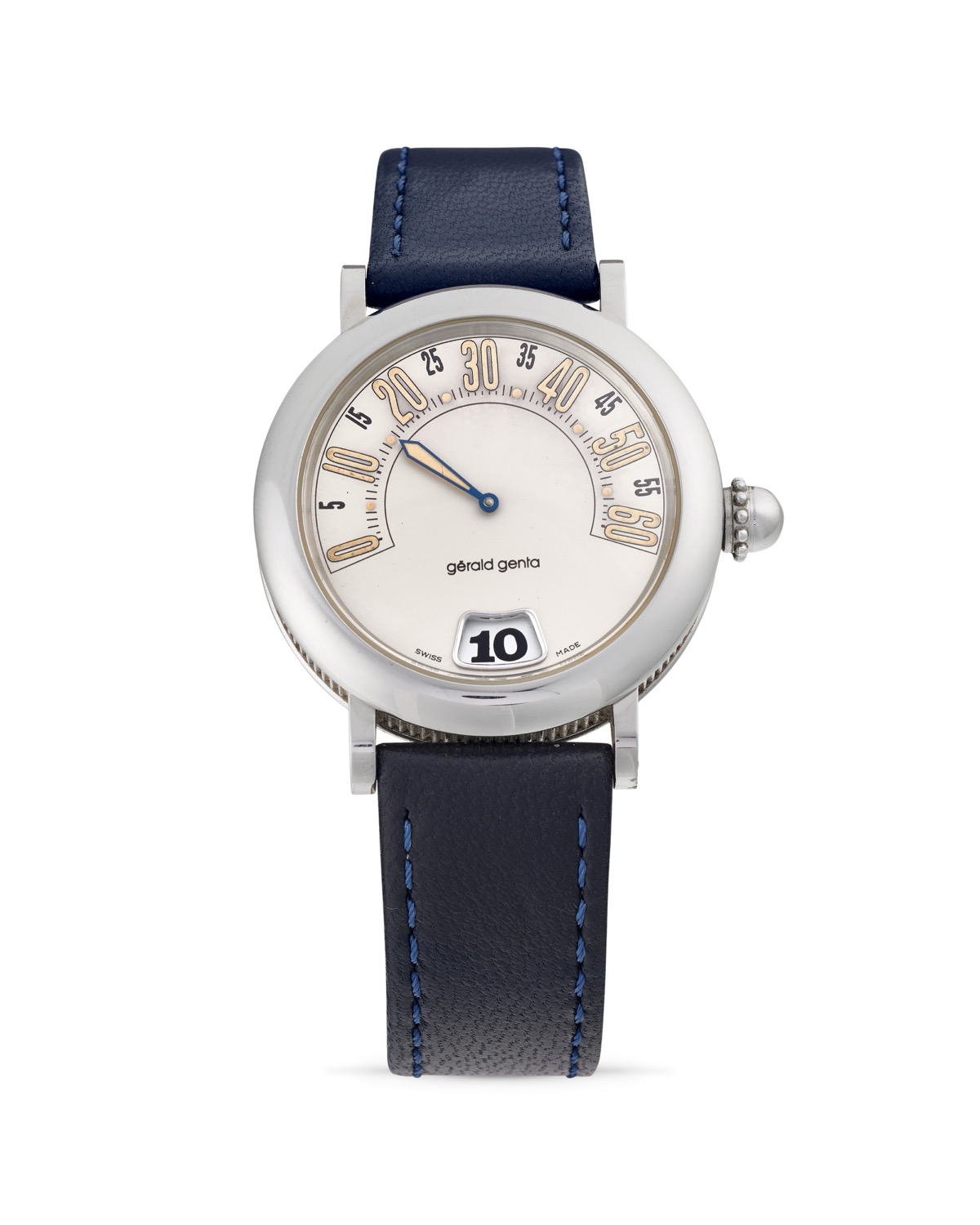 Cinturino in pelle e fibbia Gérald Genta in acciaio.
