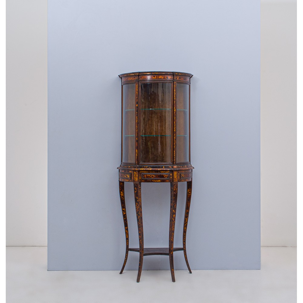 Piccola vetrina a doppio corpo di forma bombata in legno rivestita da tartaruga. L'opera è corredata da certificato Cites.