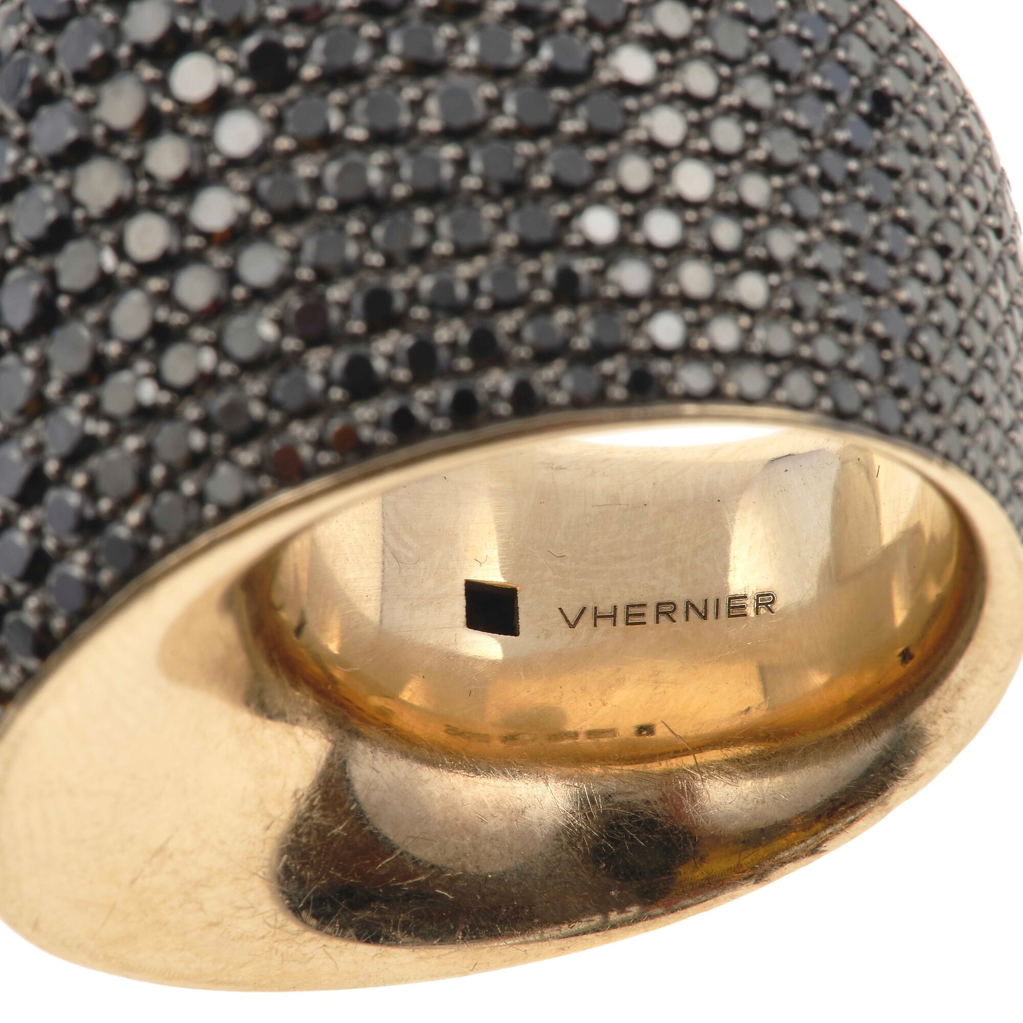 Vhernier. Anello 'Pirouette' con diamanti neri montatura in oro giallo...
