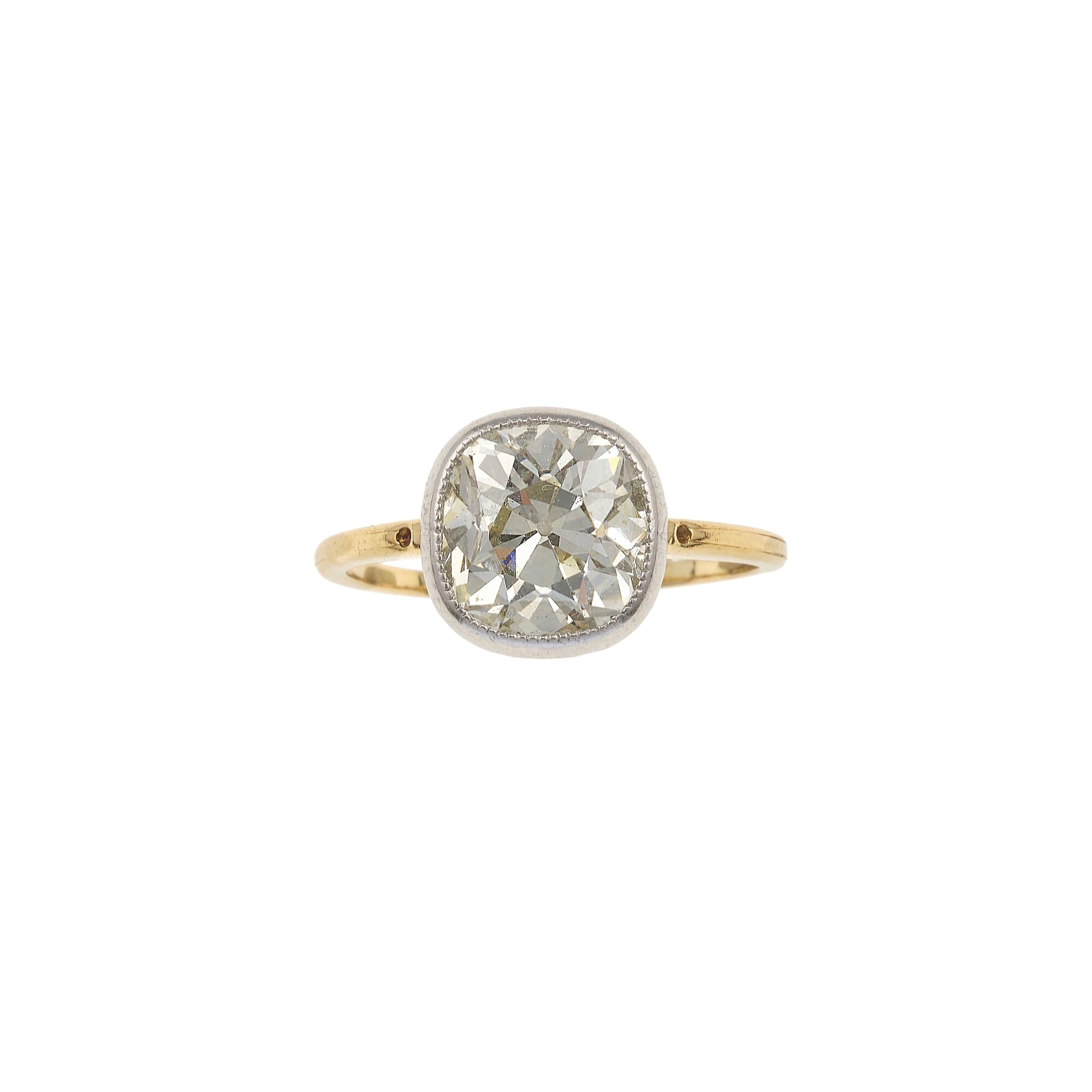 Anello con diamante taglio cuscino di ct 1.60 circa montatura in oro giallo...