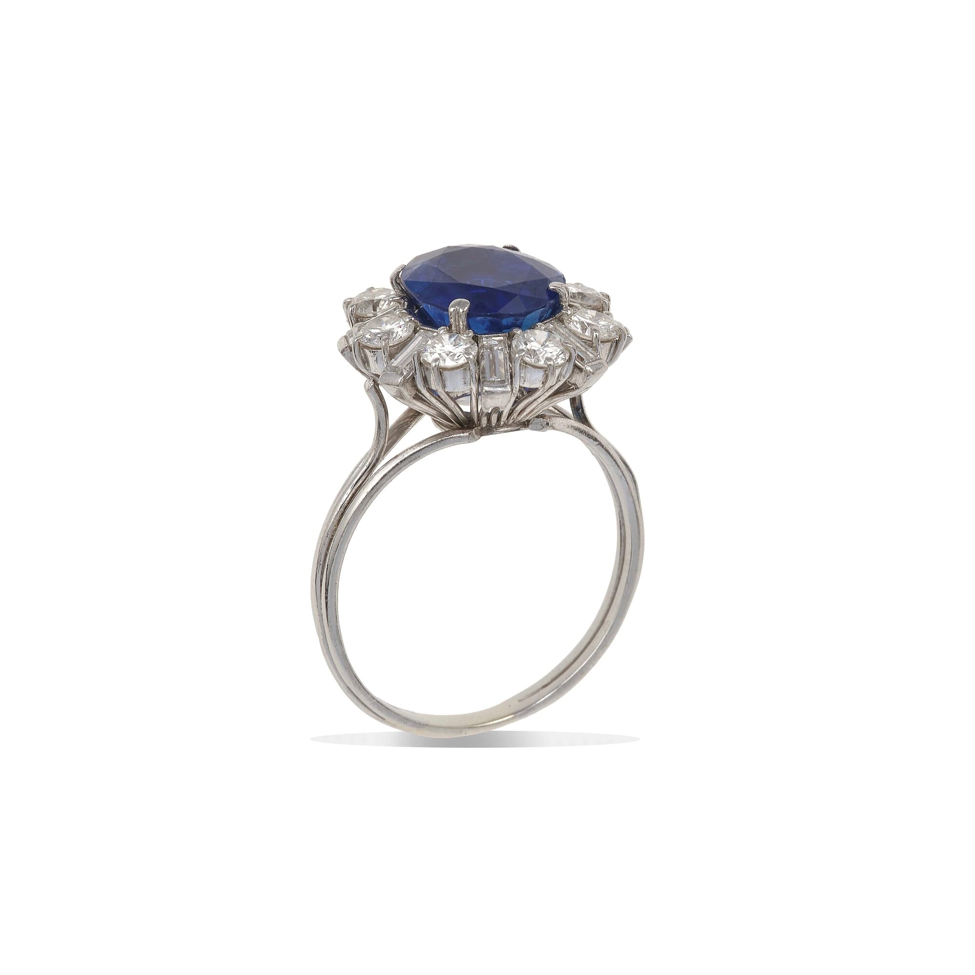 Anello con zaffiro Sri Lanka di ct 4.58, nessuna indicazione di riscaldamento, e diamanti