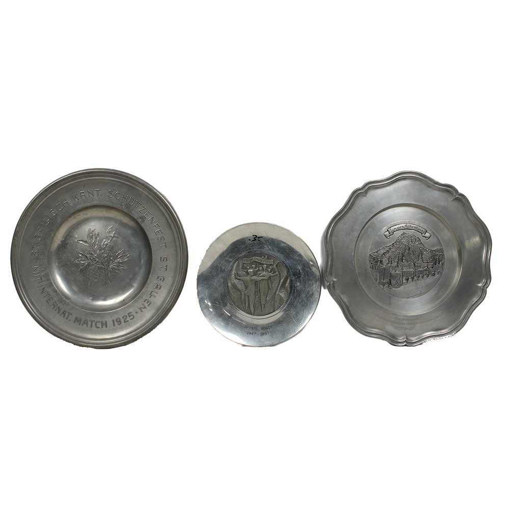 LOTTO DI 6 PIATTI DA PARETE DECORATIVI in vari metalli misure varie