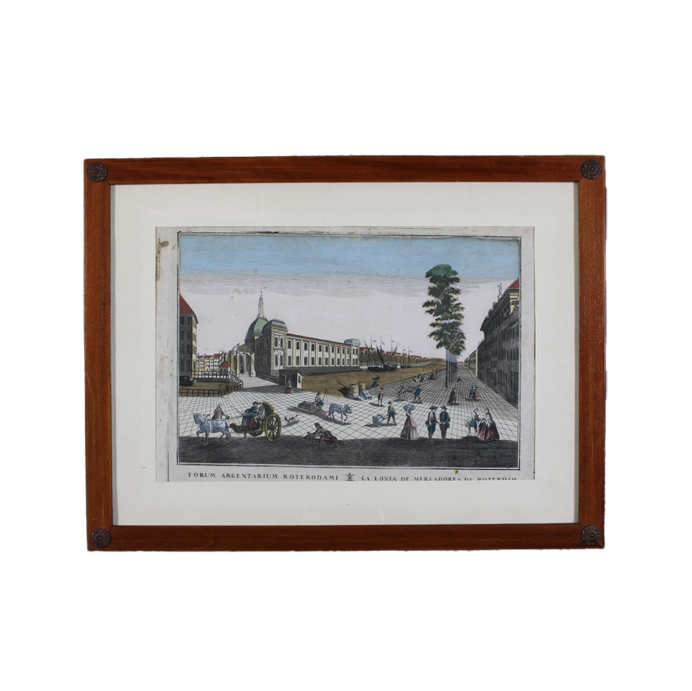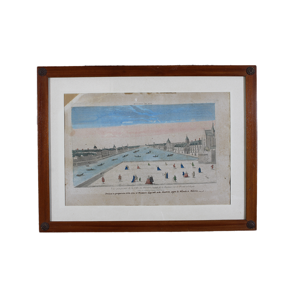 LOTTO DI DUE ACQUEFORTI COLORATE raffiguranti vedute prospettiche di Varsavia , dentro cornicette in legno con piccole borchie Francia XVIII/XIX secolo h cm 46,5 x 61,5