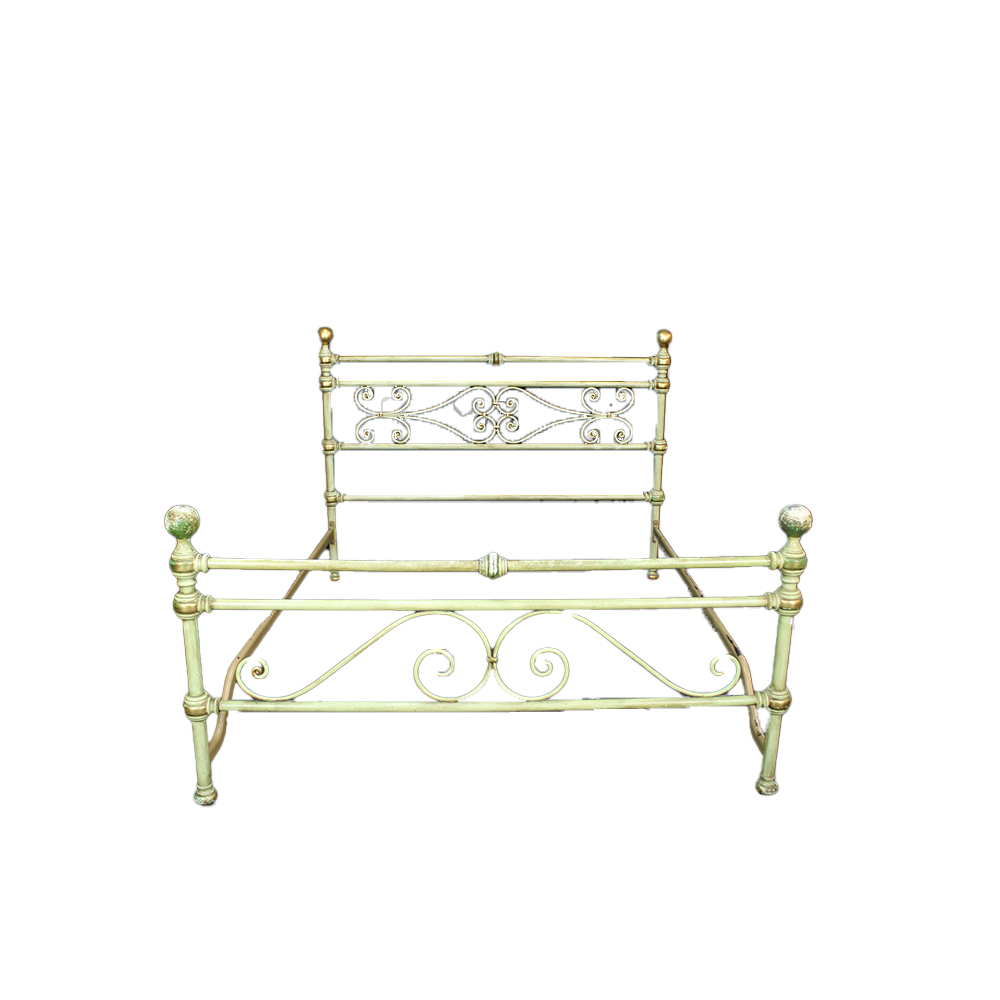 LETTO in ferro battuto, dipinto e laccato con lumeggiature in oro maestranze siciliane primi 900 h cm 133 x 176 x 210
