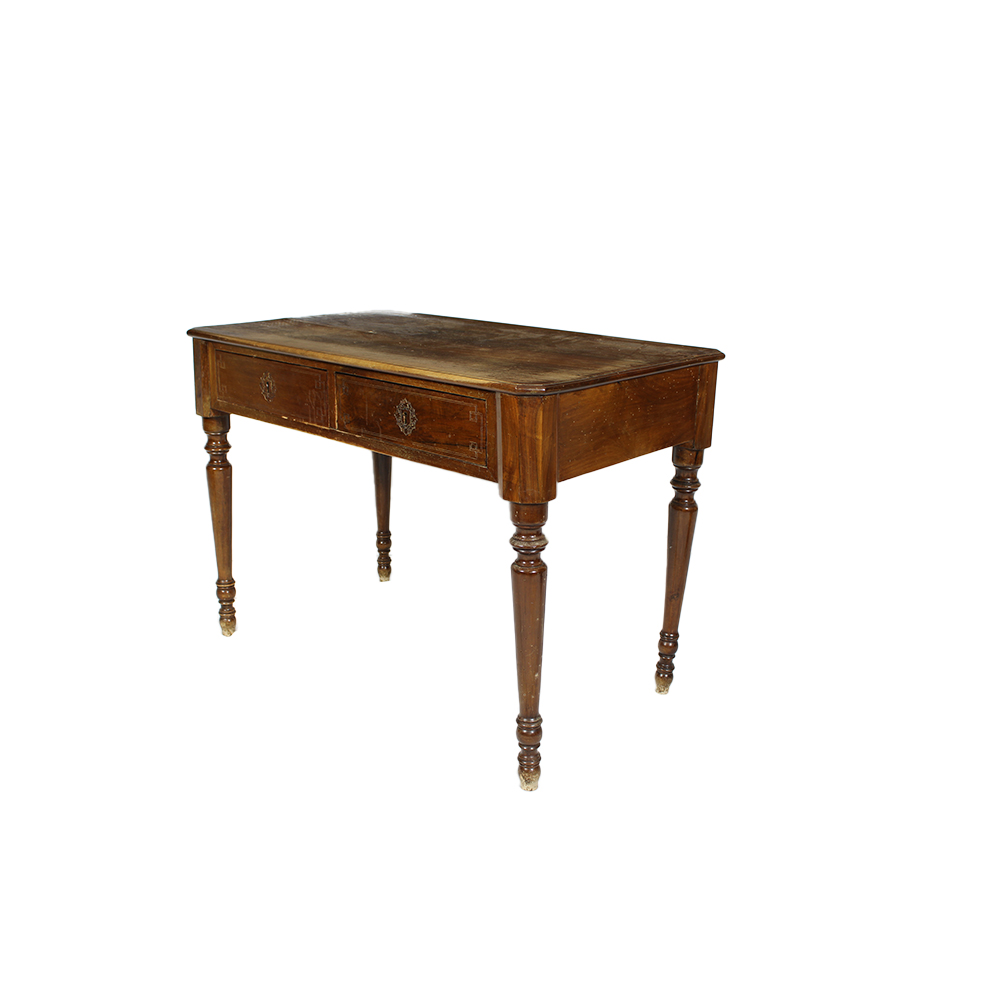 SCRIVANIA in legno di noce a due cassetti Sicilia XIX secolo h cm 78 x 110 x 62