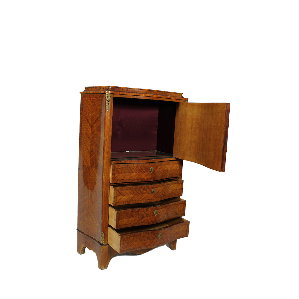 SECRETAIRE in palissandro composto da 4 cassetti parte inferiore, uno sportello nella parte superiore, arricchito da serramenti e fregi in bronzo dorato maestranze siciliane primi 900 h cm 139 x 90 x 41