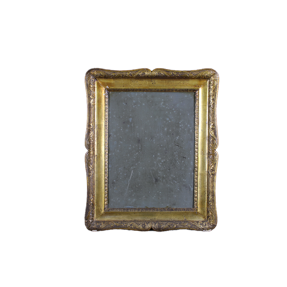 BELLA SPECCHIERA CON CORNICE A GUANTIERA decorata a palmette in legno dorato ad argento e mecca Sicilia primi XIX sec h cm 81 x 66