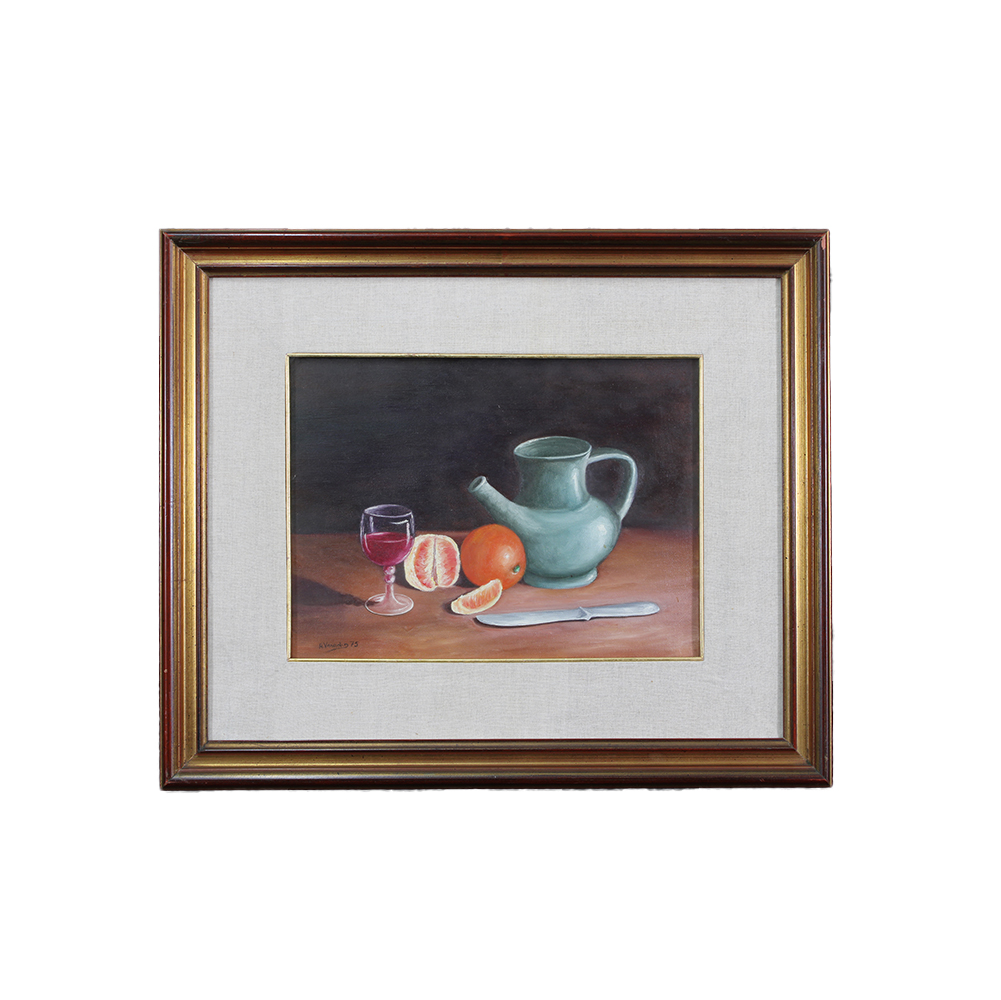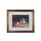 OLIO SU TELA raffigurante natura morta . Firma indistinta. Dentro cornice in legno dorato XX secolo h cm 30 x 40 - cornice h cm 54,5 x 66