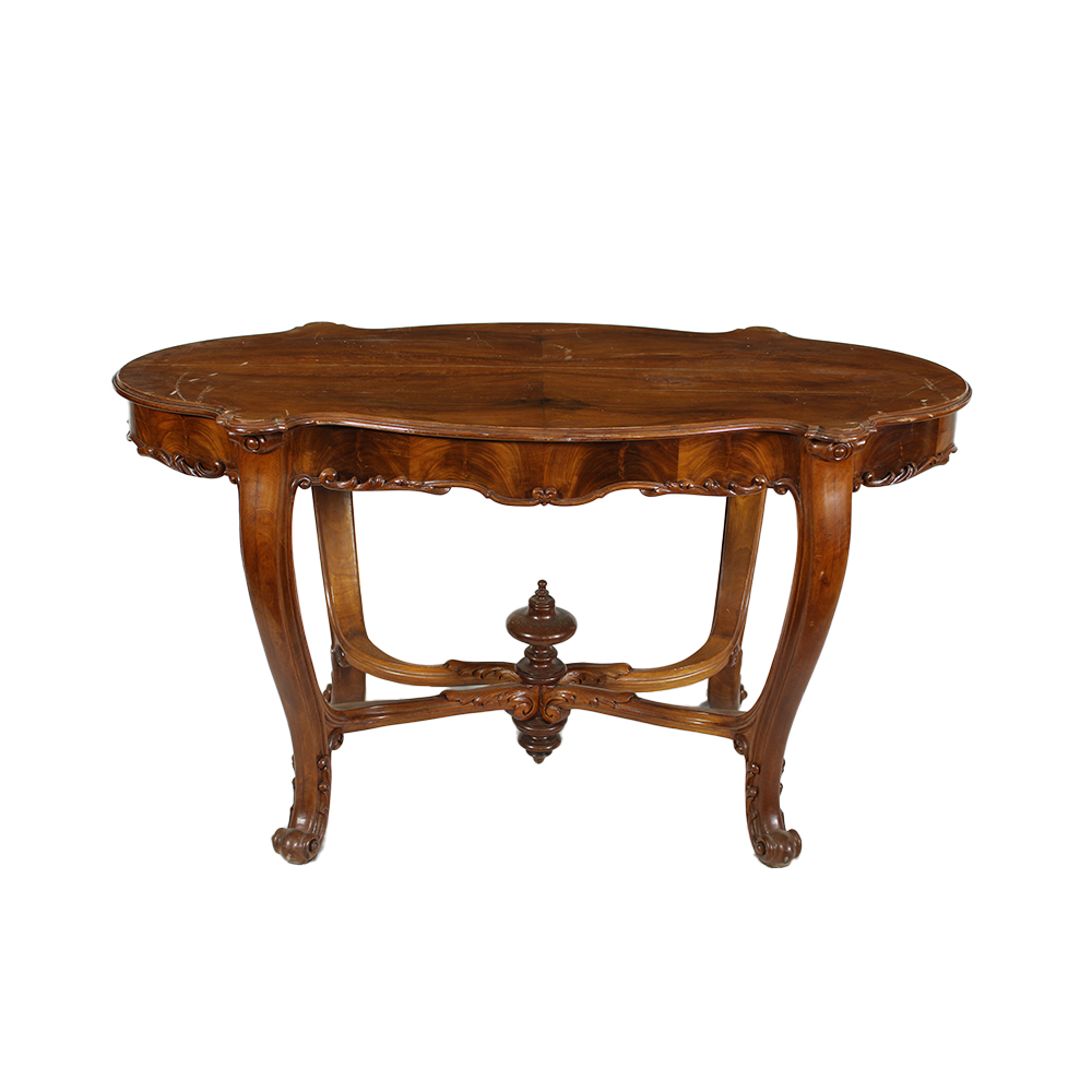 TAVOLO DA CENTRO A BISCOTTO in piuma di mogano Francia XIX secolo h cm 76 x 134 x 70