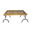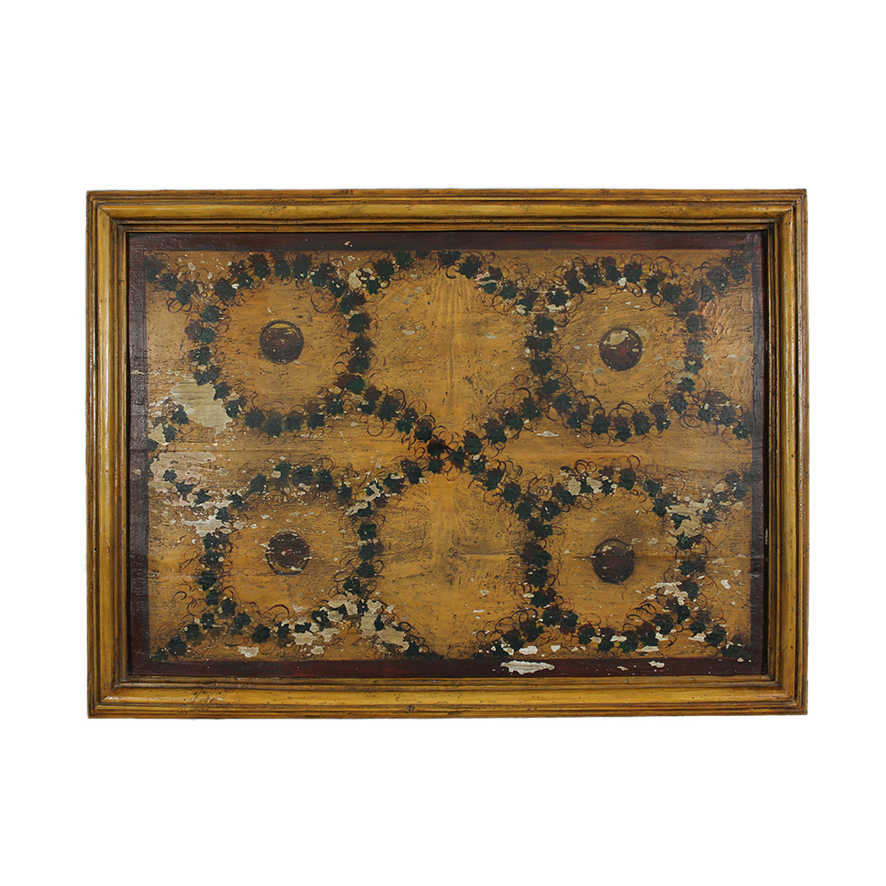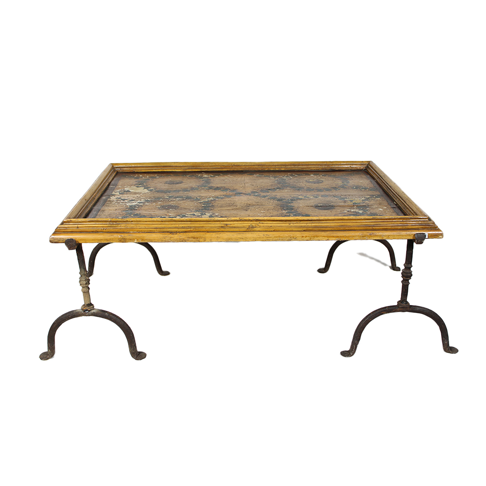 TAVOLINO DA SALOTTO realizzato con pannello decorativo in legno laccato e dipinto a motivi floreali la base composta da due trespoli in ferro Sicilia XVIII secolo tavola h cm 127 x 93 - piede h cm 48