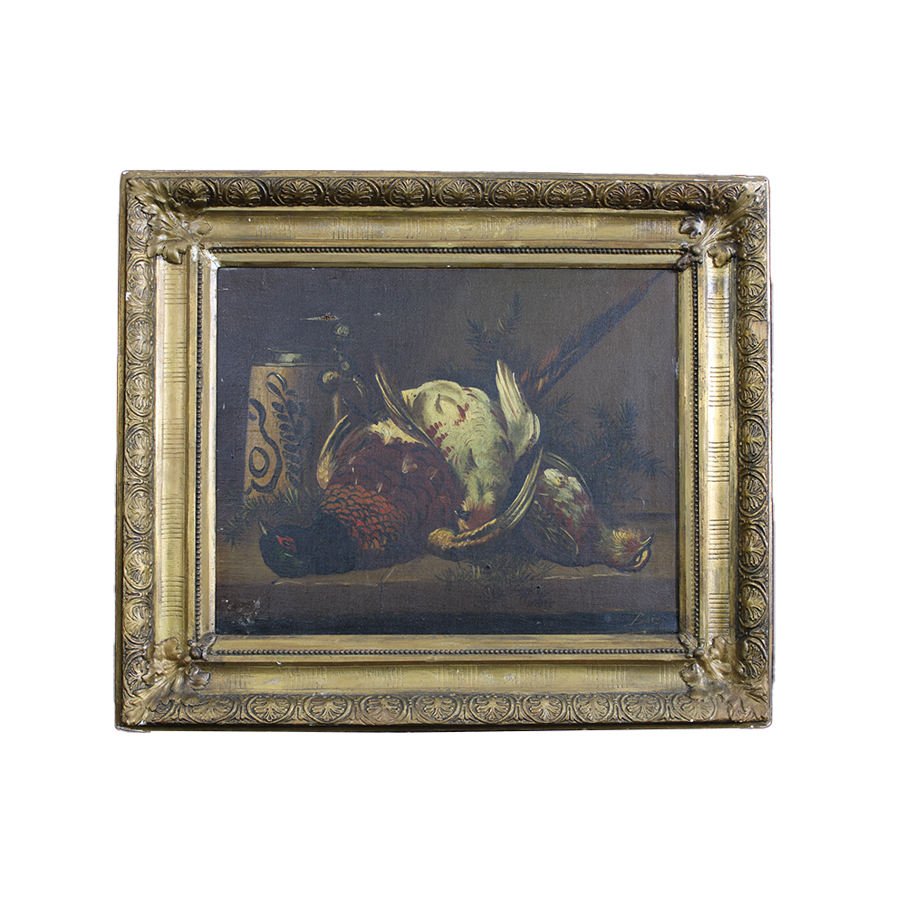 DIPINTO OLIO SU TELA raffigurante natura morta dentro cornice dorata, firmata Bois h cm 50 x 40 - cornice h cm 58 x 67