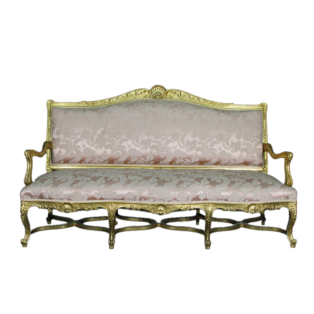 DIVANO in legno riccamente intarsiato e dorato manifattura francese XIX/XX secolo h cm 114 x 190 x 65