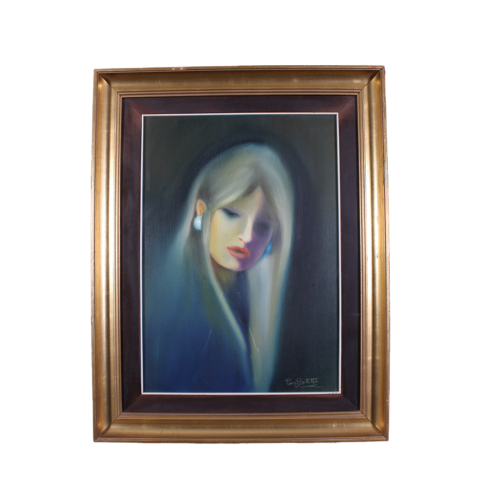 PINO BUTTITTA OLIO SU TELA raffigurante ritratto di donna dentro cornice in legno dorato XX secolo h cm 70 x 50 - cornice h cm 90 x 70