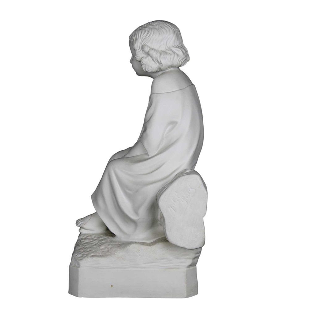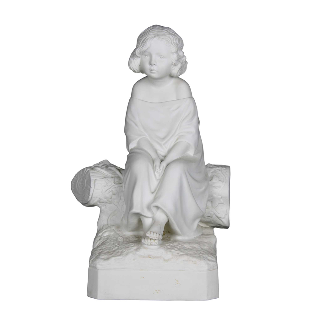 GRUPPO SCULTOREO in biscuit raffigurante Fanciulla a riposo sul tronco firmato con marchio Porcellaine de France e firma illeggibile Francia primi XX secolo h cm 42 x 28 x 22