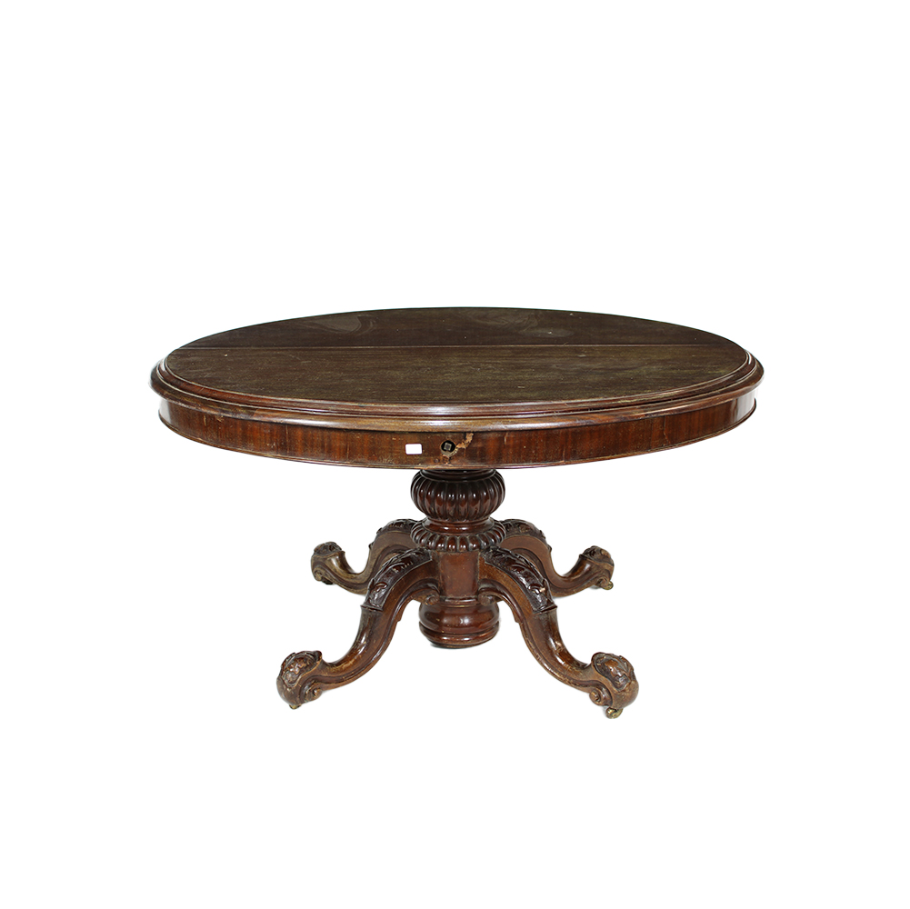 TAVOLO DI FORMA CIRCOLARE a piede centrale allungabile con manovella in legno di mogano Francia XIX secolo h cm 76 x Ø 140