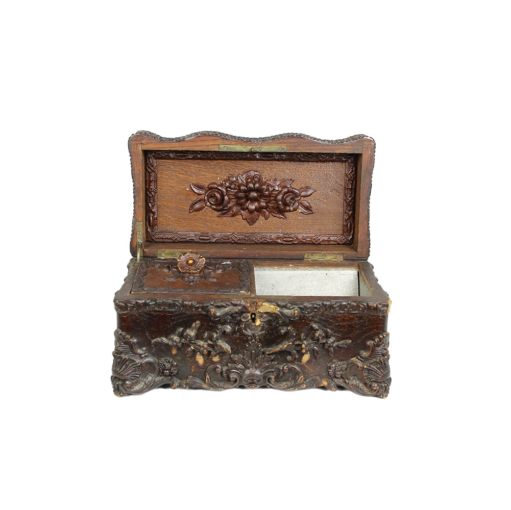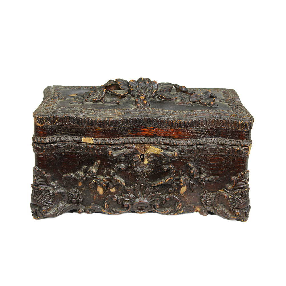 SCATOLA in legno riccamente scolpita Germania XIX secolo h cm 13 x 25 x 14