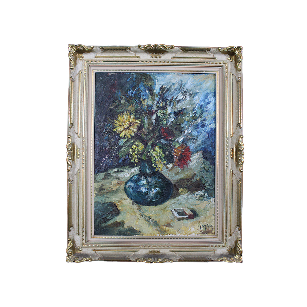COSTANTINO LAGANA 1921 acrilico su tavola Vaso di fiori dentro importante cornice in legno XX secolo h cm 80 x 63 - cornice h cm 107 x 86