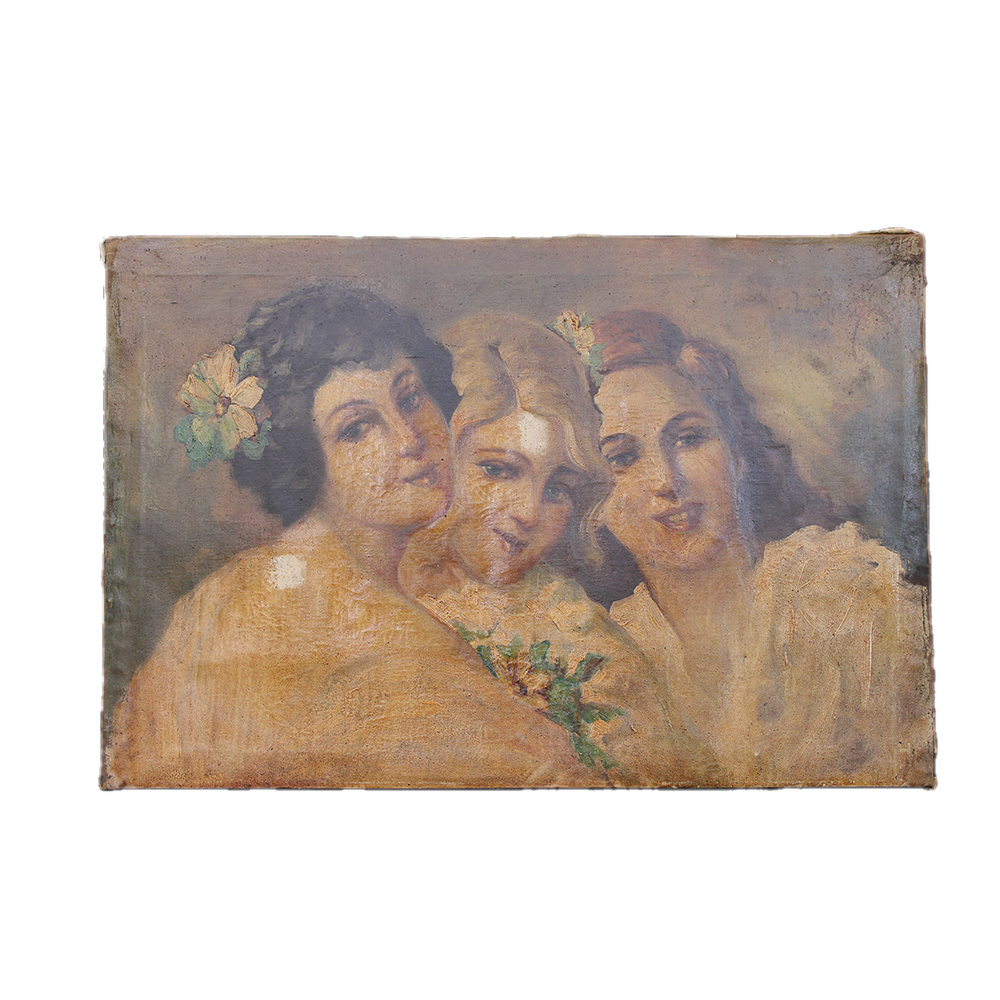 L.ROSSY Olio su tela raffigurante Tre volti di donna. Senza cornice h cm 50 x 74
