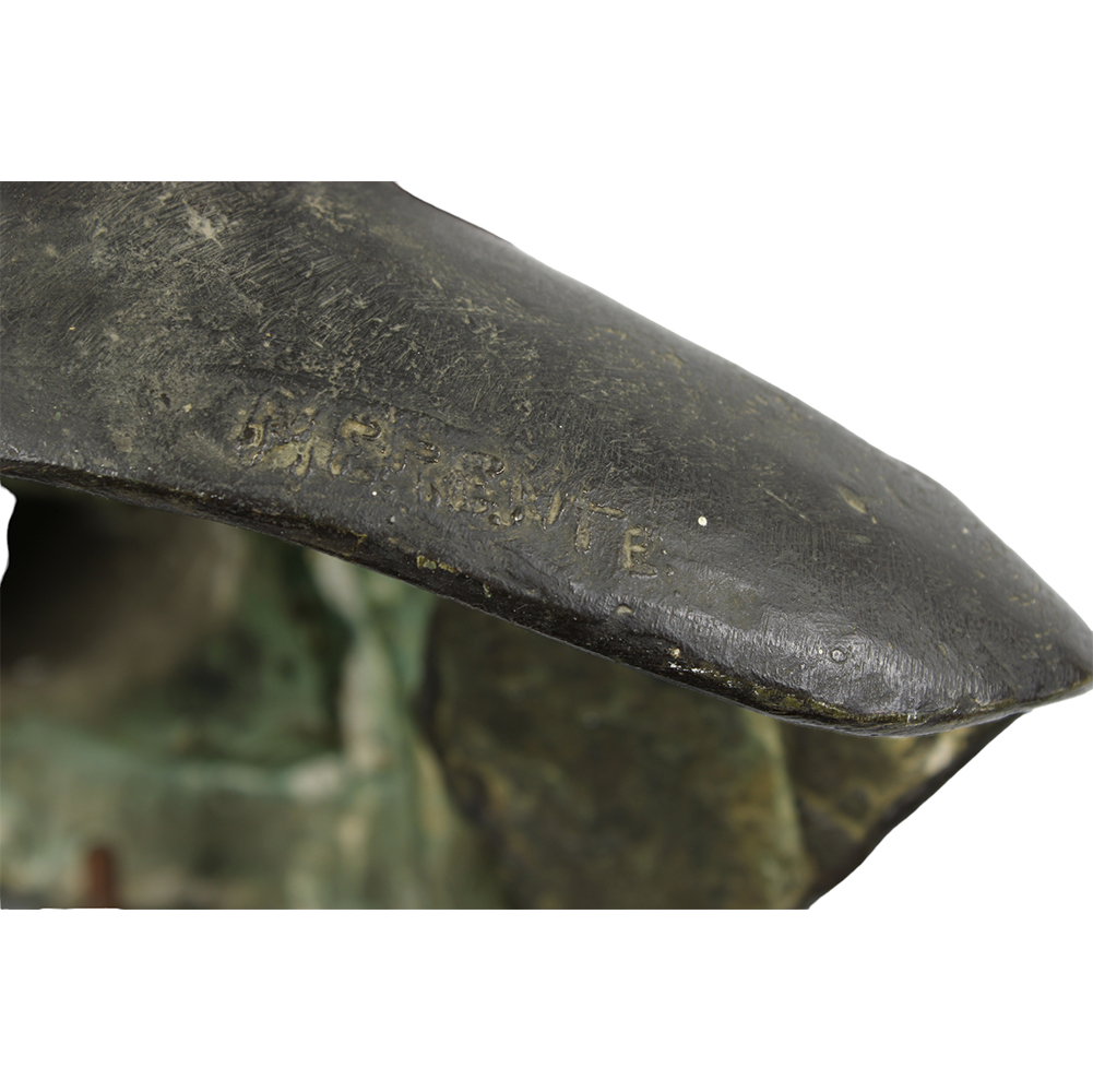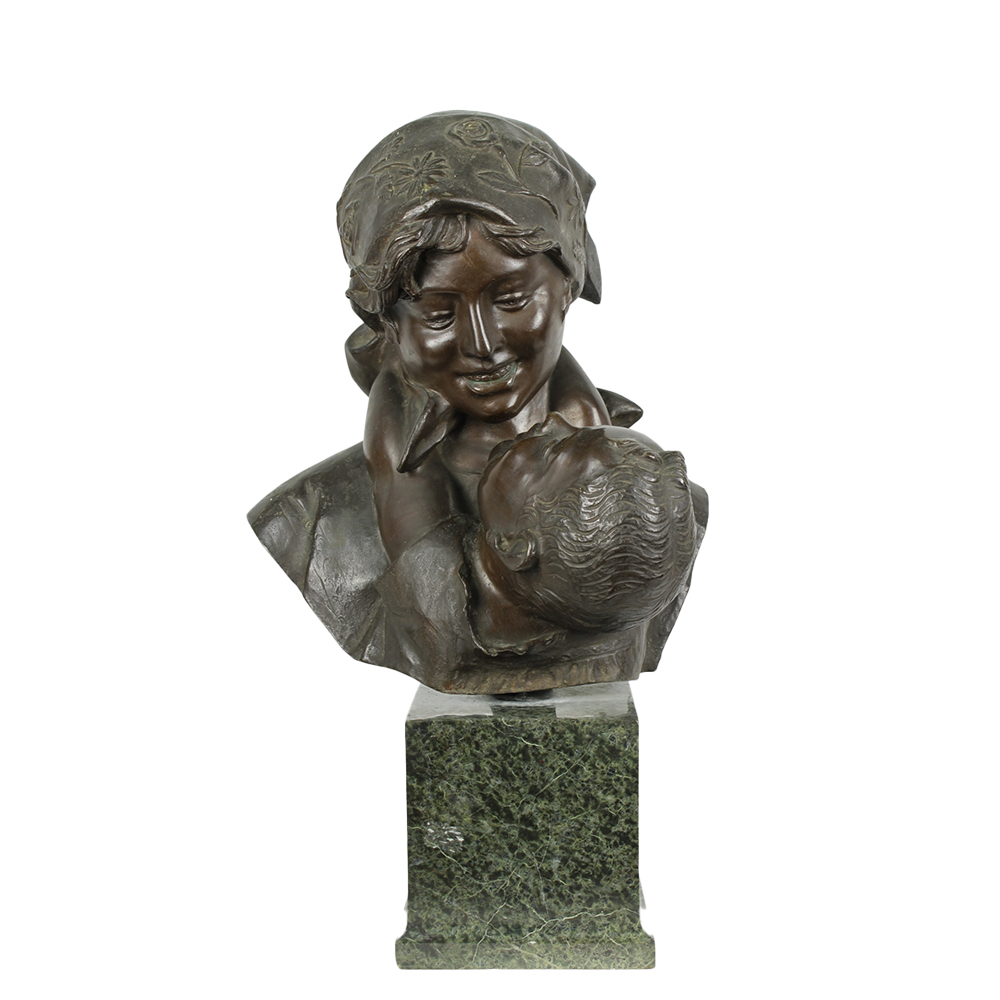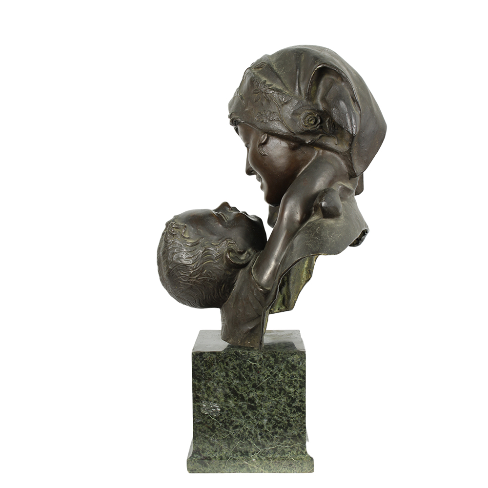 SCULTURA in bronzo raffigurante maternità con base in marmo verde delle Alpi a firma Merente Italia fine XIX secolo h cm 58 x 35 x 25