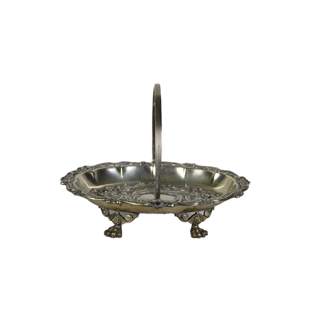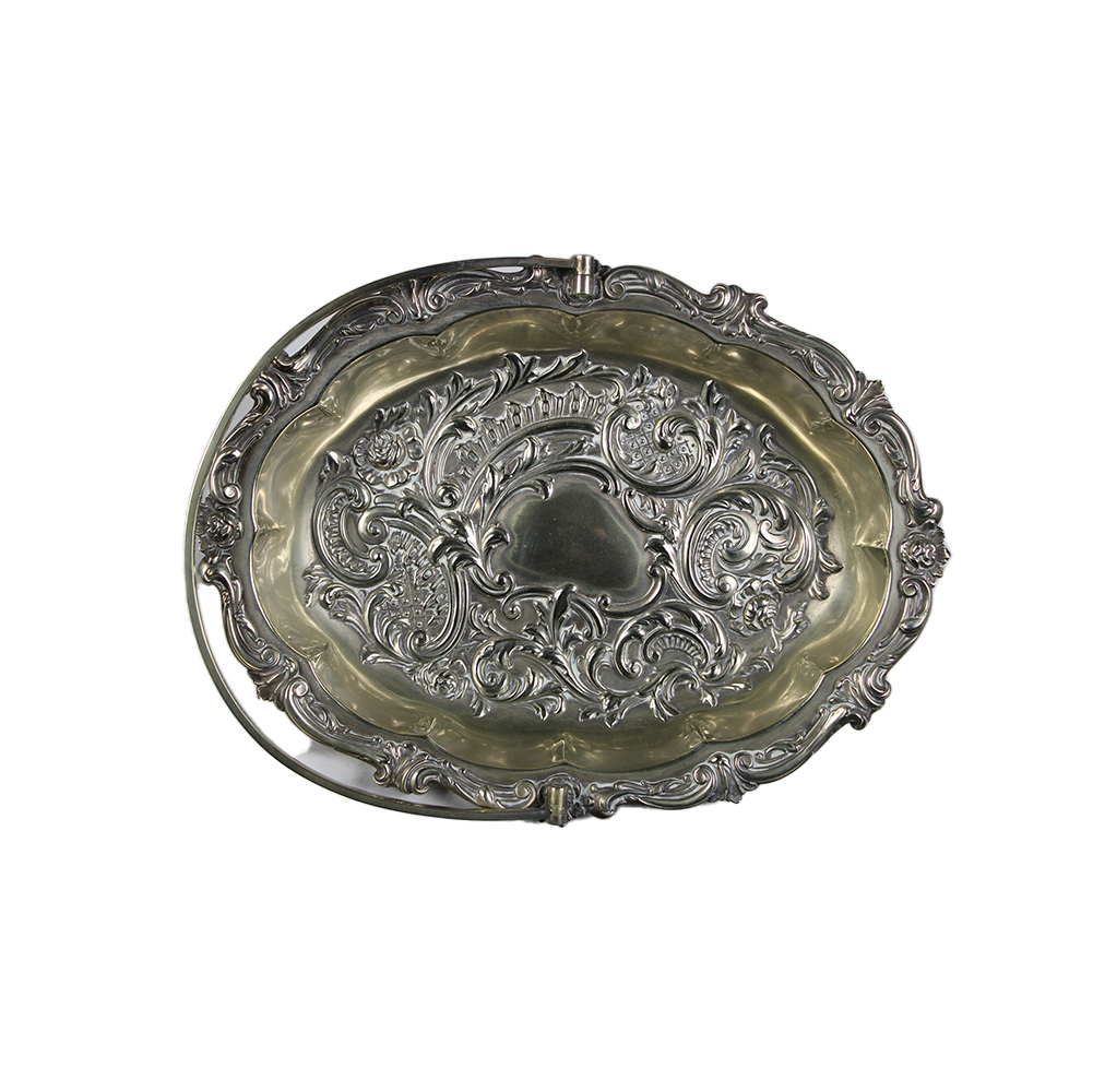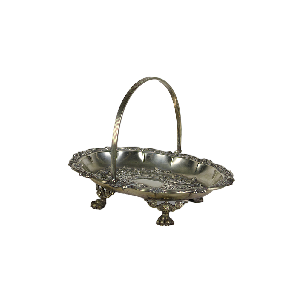 ALZATA in sheffield riccamente sbalzata e finemente cesellata Inghilterra primi 900 h cm 23 x 30 x 22