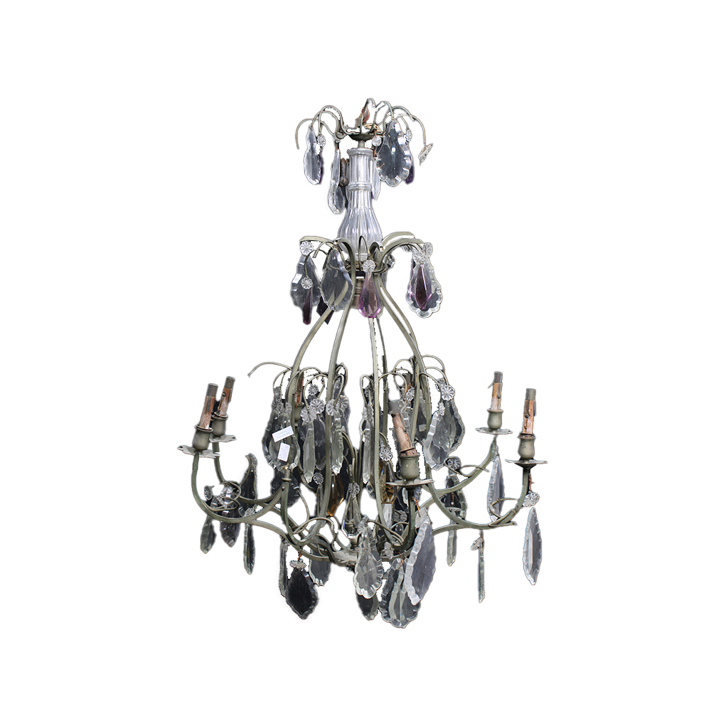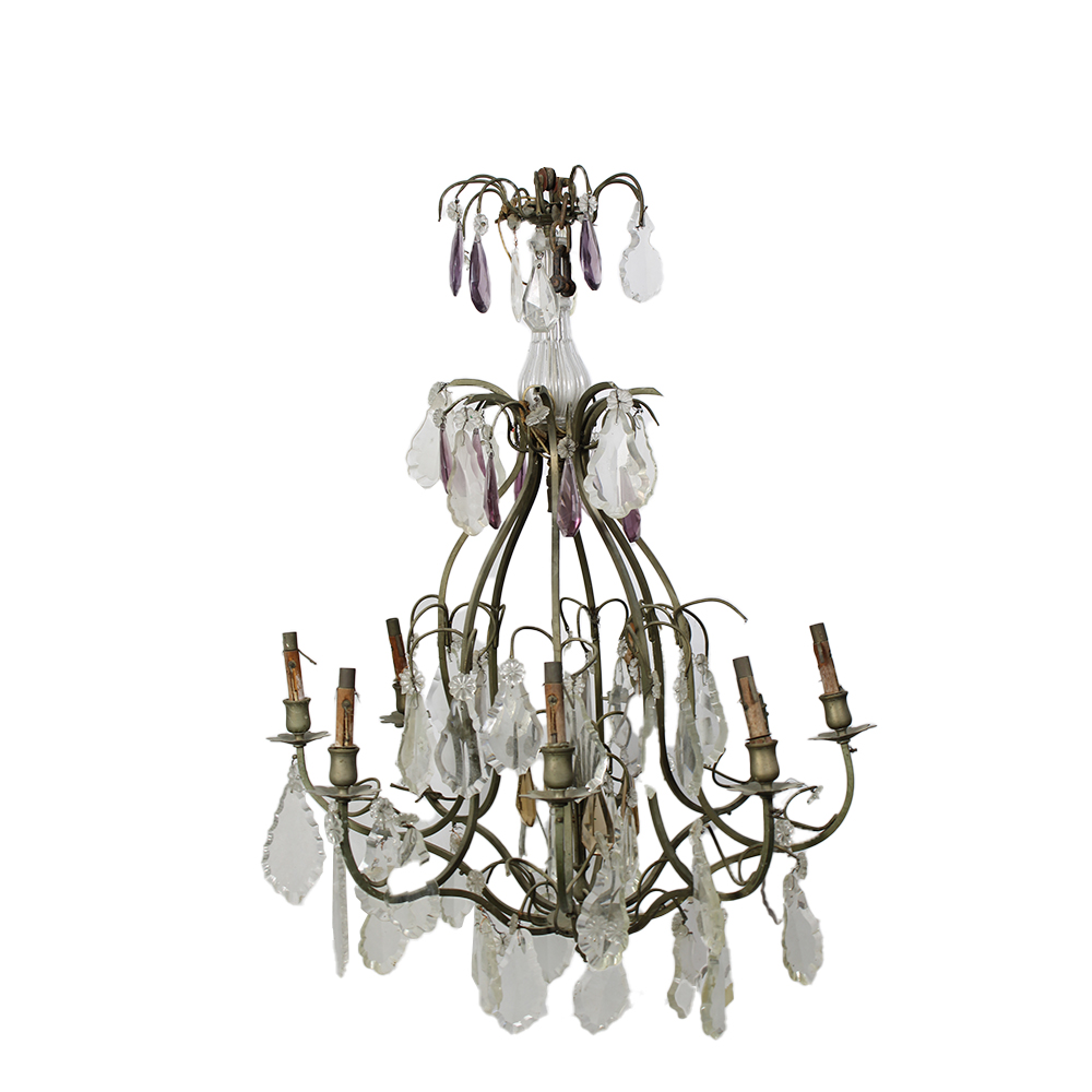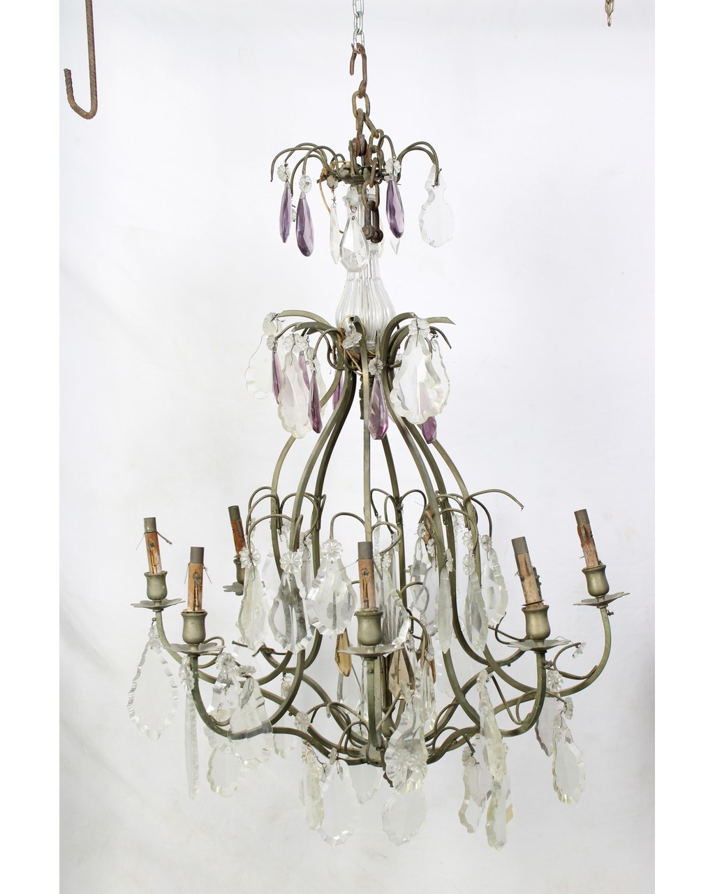 LAMPADARIO 8 LUCI in ottone e pendenti in vetro maestranze siciliane XIX secolo h cm 86 x 63