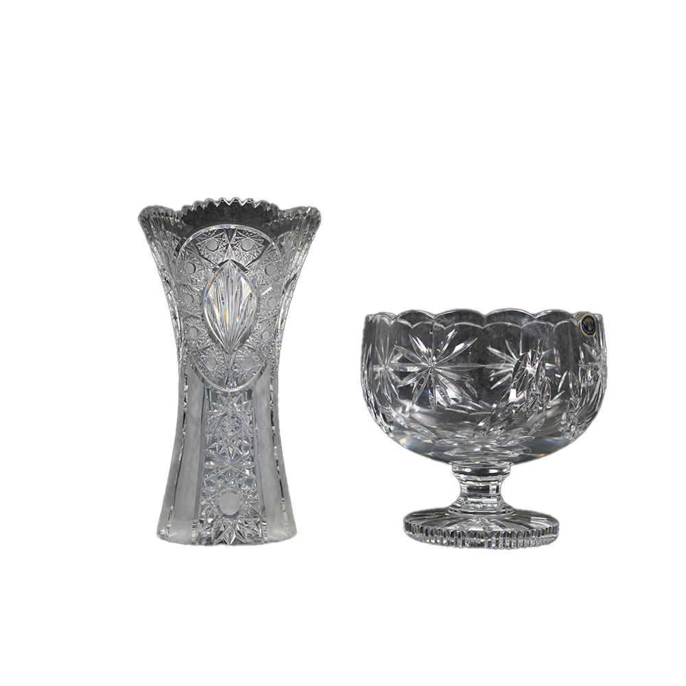 LOTTO COMPOSTO DA 1 centrotavola in cristallo intagliato di Boemia e 1 vaso in cristallo XX secolo h cm 30 x 18 - h cm 21 x 24